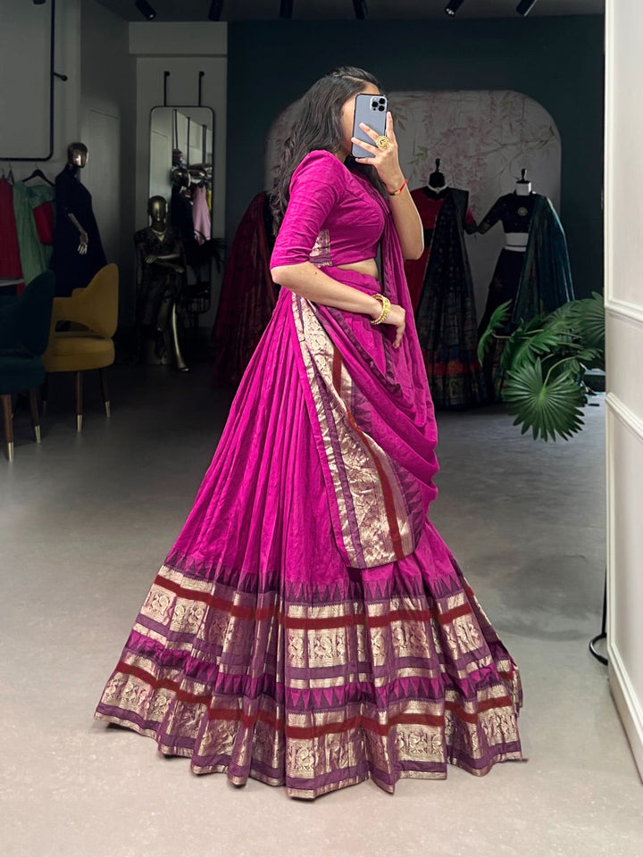 A tale Of Royalty Woven in Chanderi Zari Lehenga