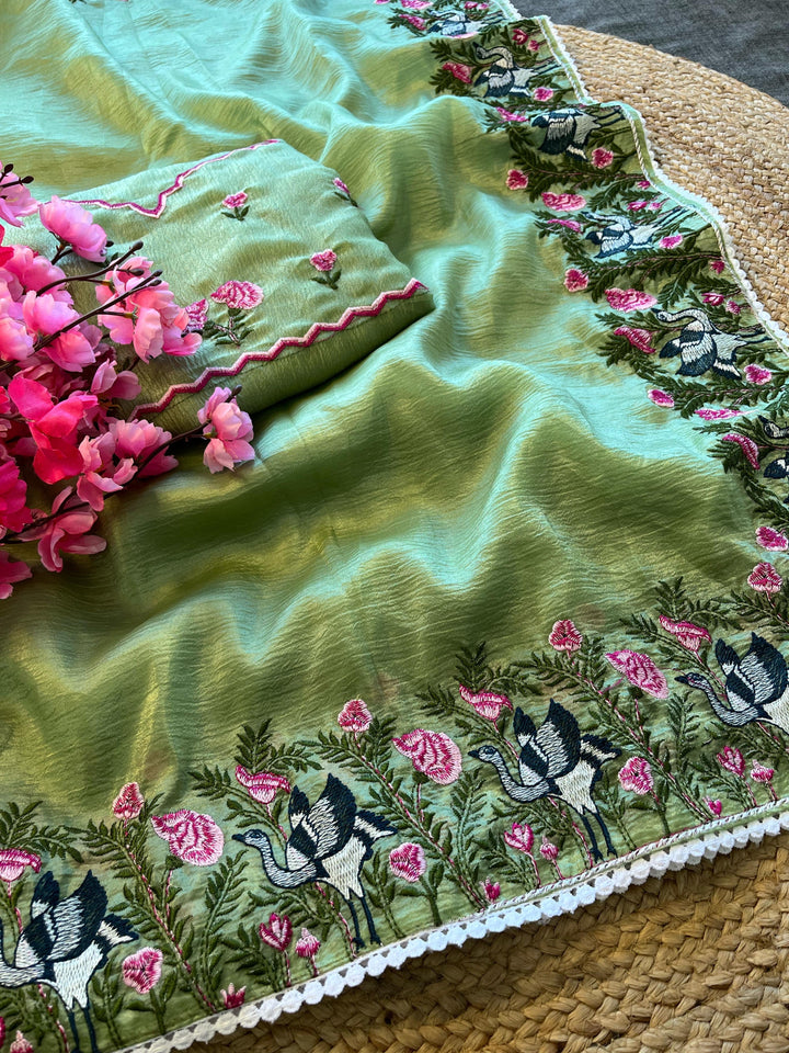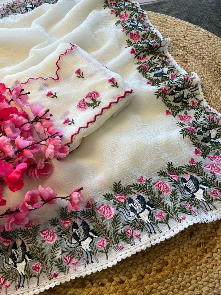 *Blouse* :- Pure Candy Crush with Beutiful Pattern in Embroidery Running Blouse
