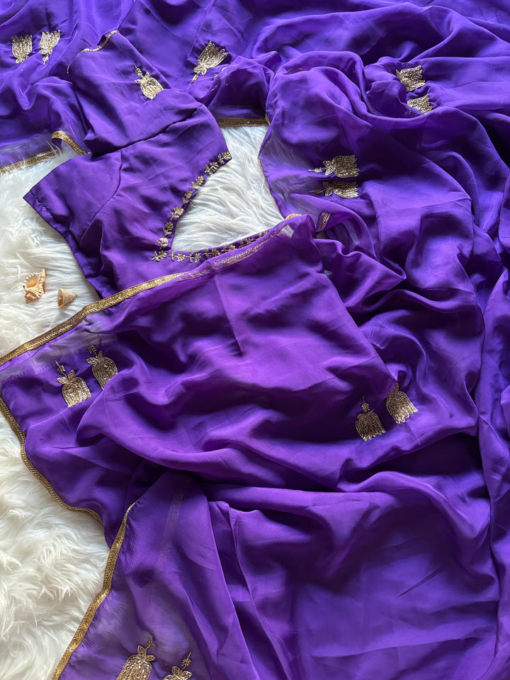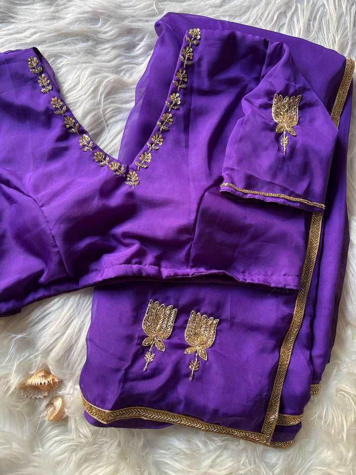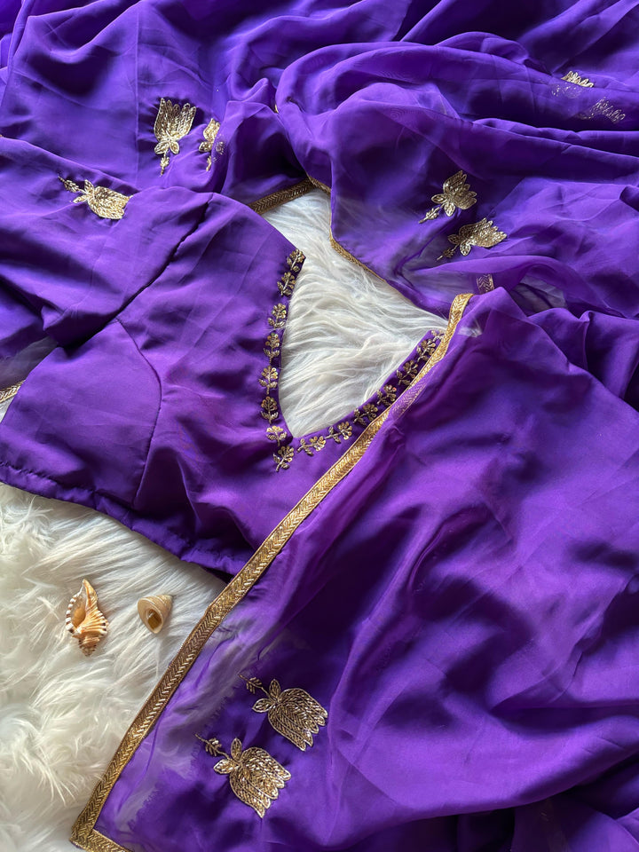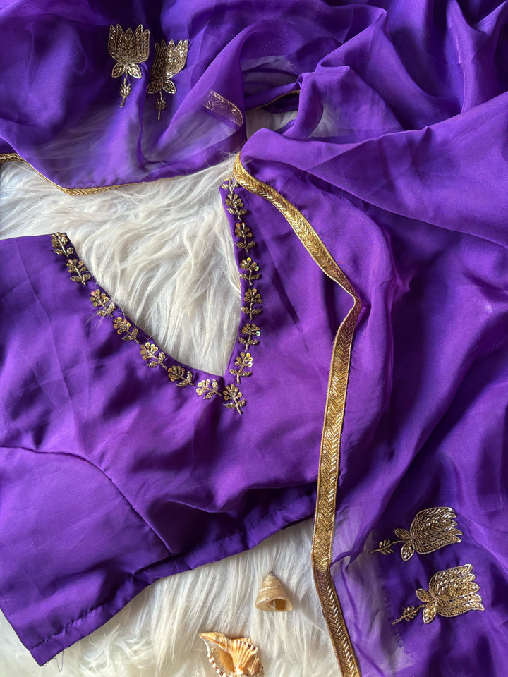 Celebrity Inspired Handcrafted saree with stitched blouse Luxe