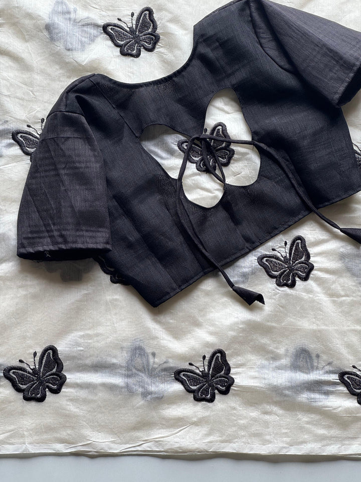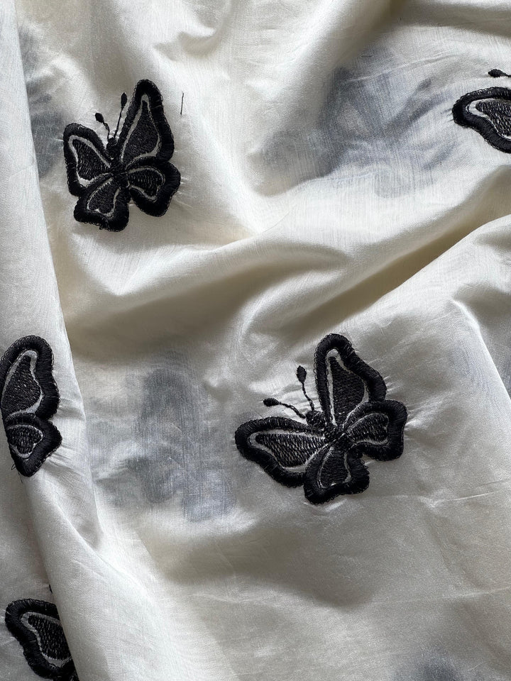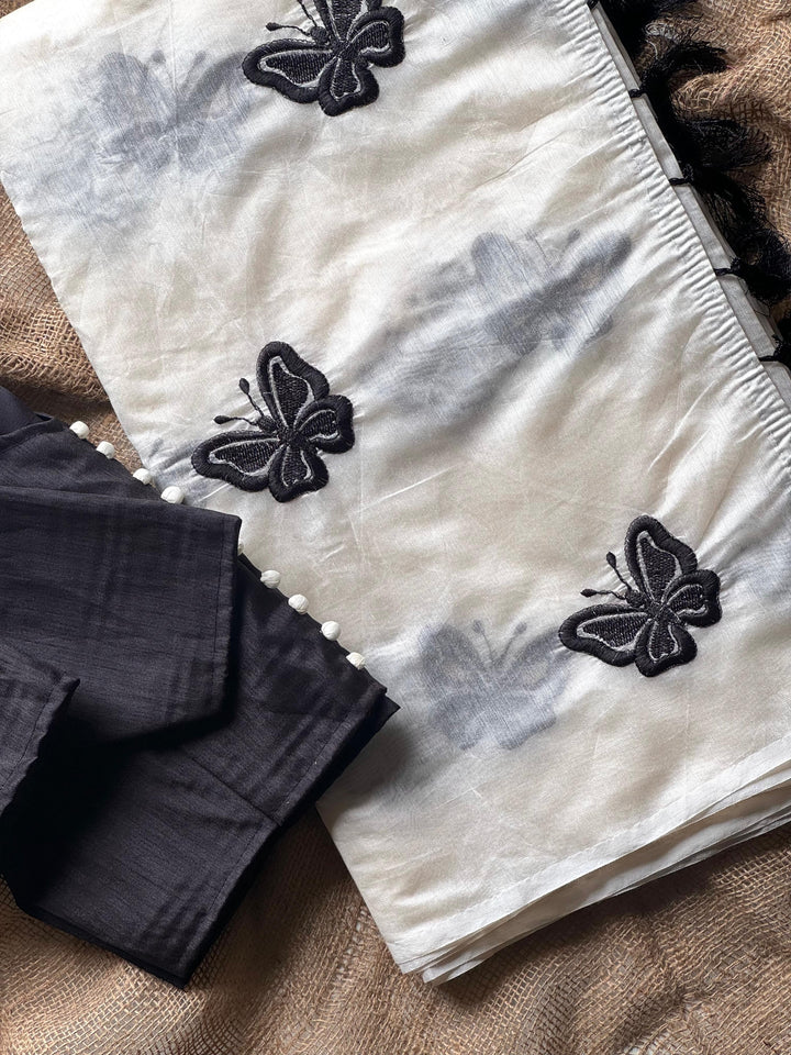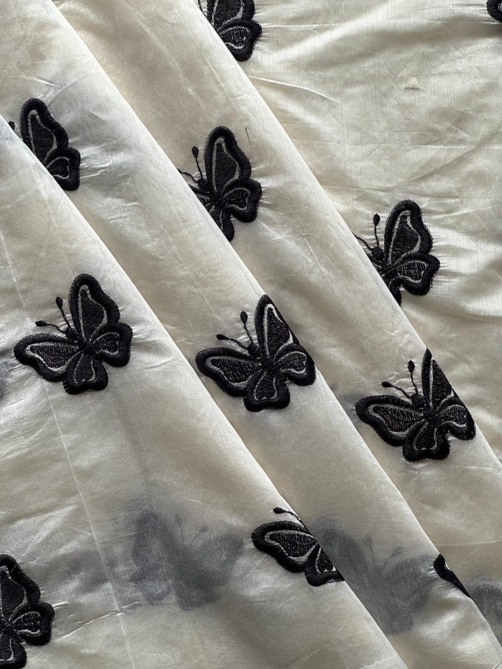 Premium chanderi saree with butterflies embroidary work on all over the saree