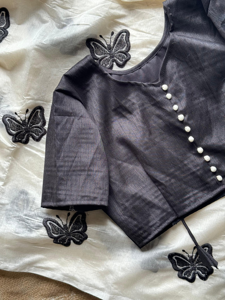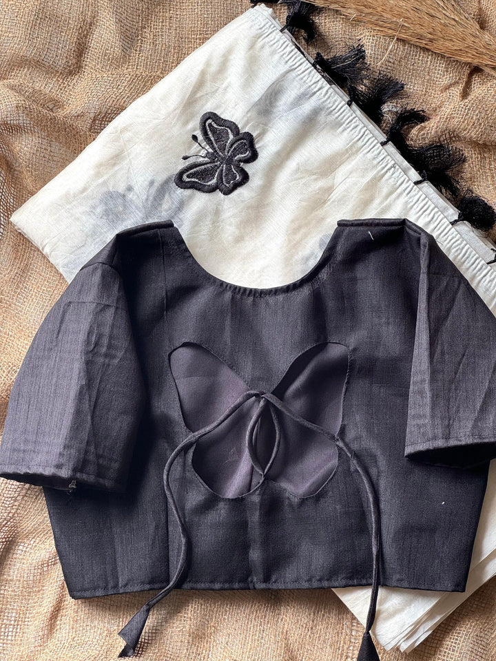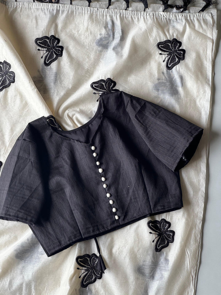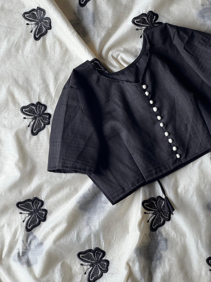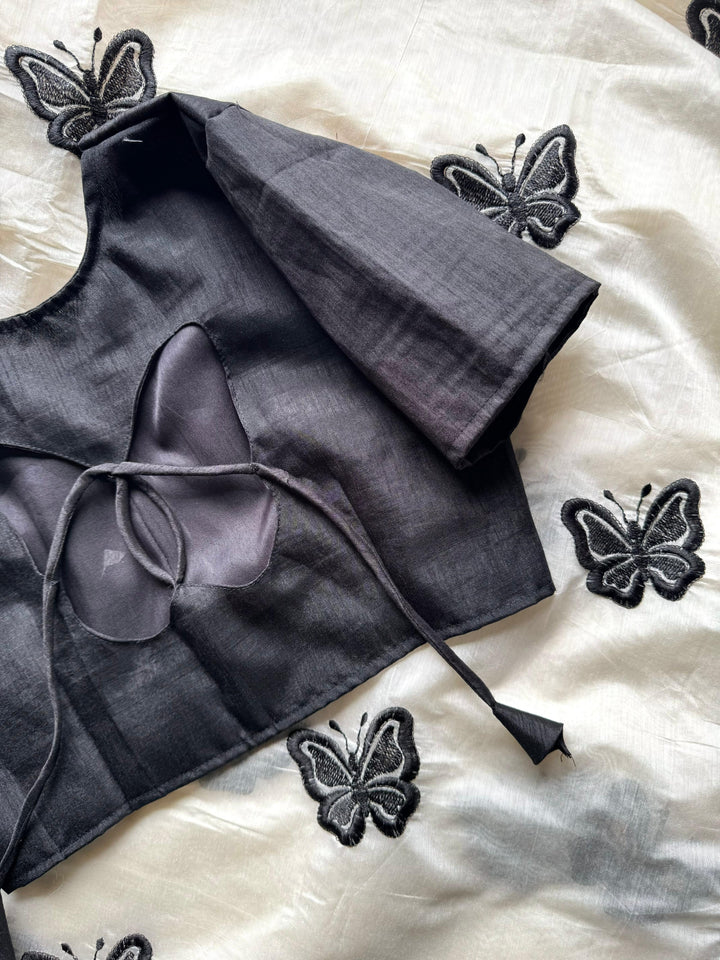 Premium chanderi saree with butterflies embroidary work on all over the saree