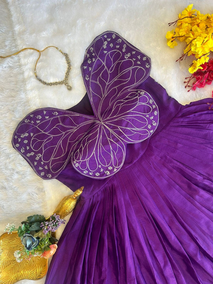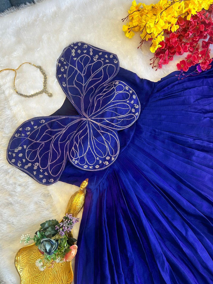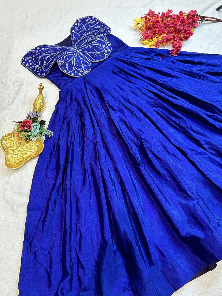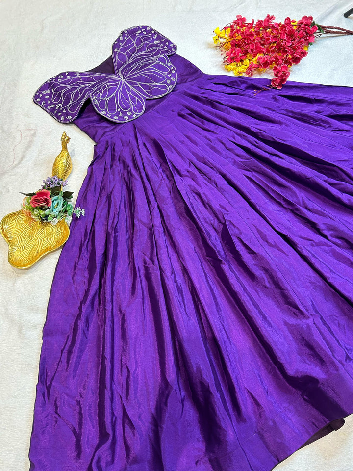Soft chinnon silk designer gown with attractive Butterfly 😍