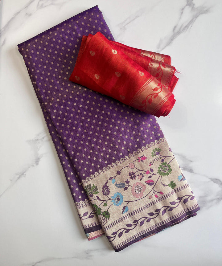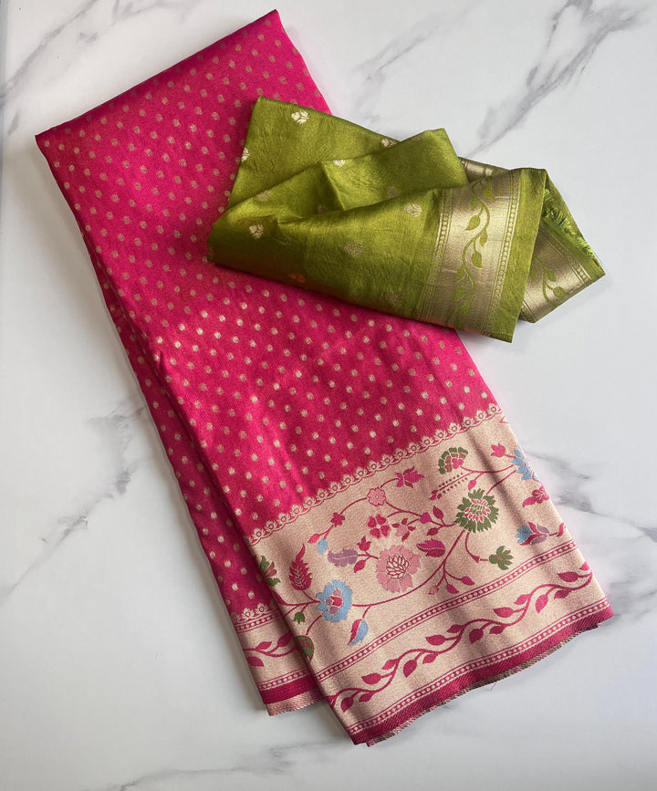 Banarasi Pattu saree with elegant weaving motifs on all over the saree
