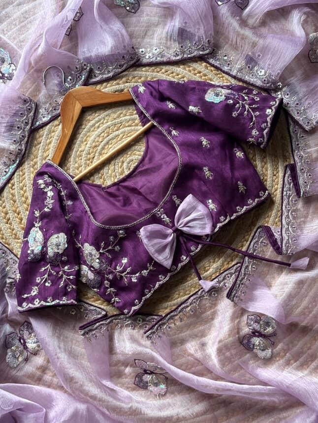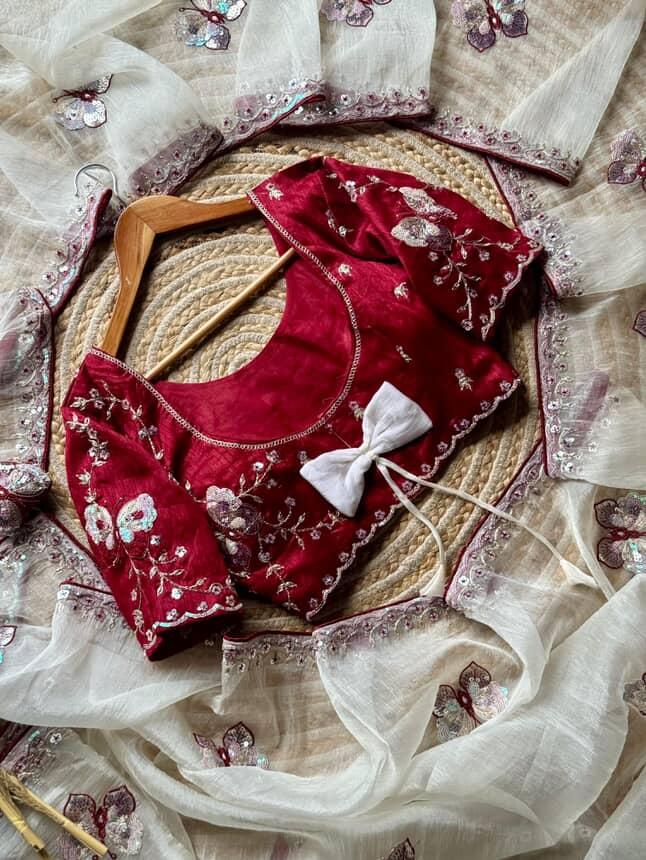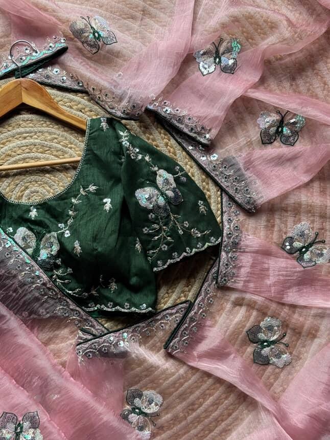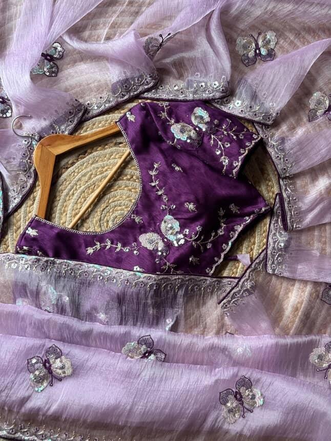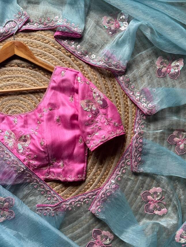 Coding work Luxe with butterfly organza saree with stitched blouse
