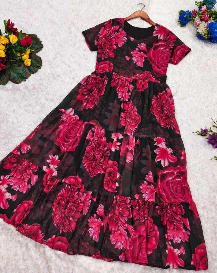 *Frills At Flare To Add The Volume To The Dress 🌹