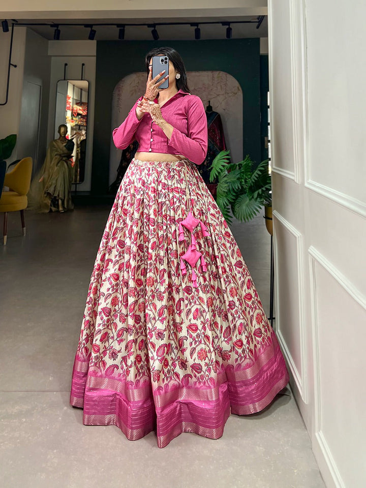 Dola silk Floral Crop Top With Skirt Lehenags