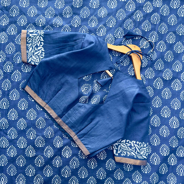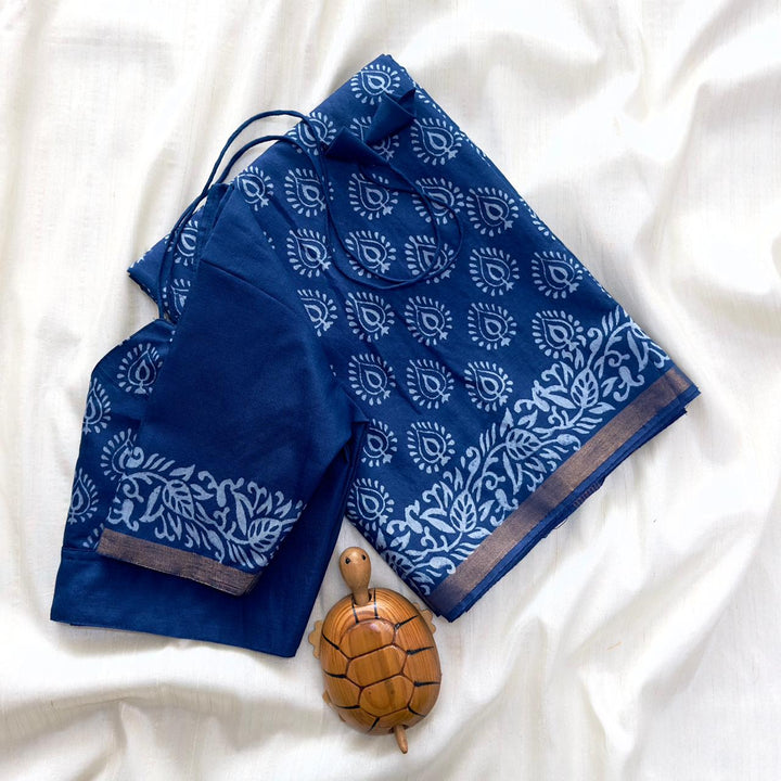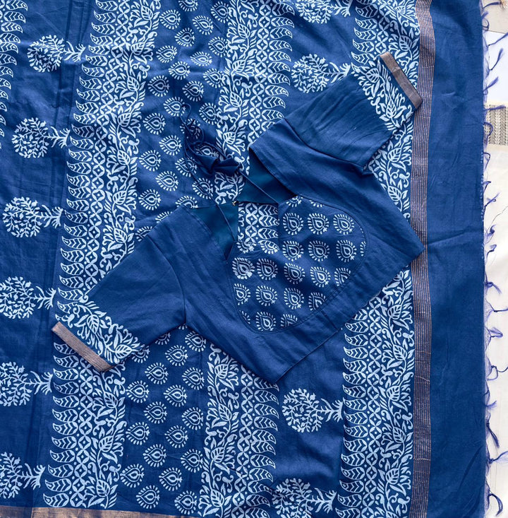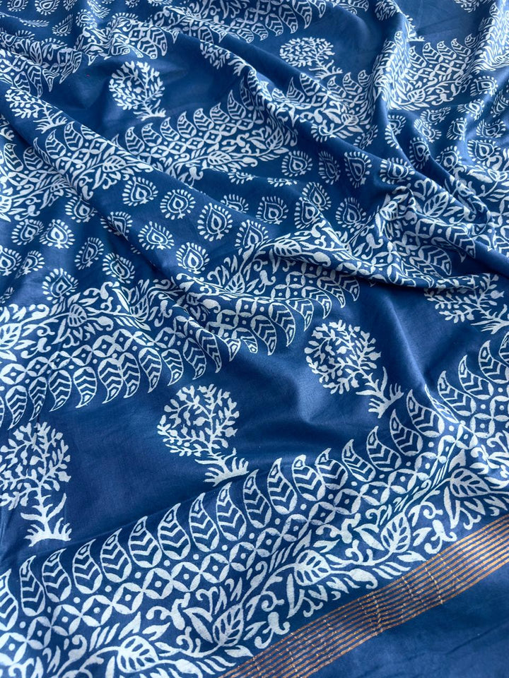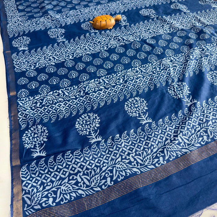 *CHANDERI COTTON SAREE WITH 2 INCH ZARI BORDER WITH INDIGO PRINT ALL OVER SAREE*