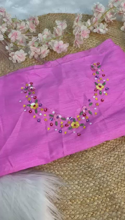 Drape yourself in grace with this Pure Soft Tebby Silk Saree featuring beautiful flower prints and intricate Cutdana + Sequence Handwork all over. ✨