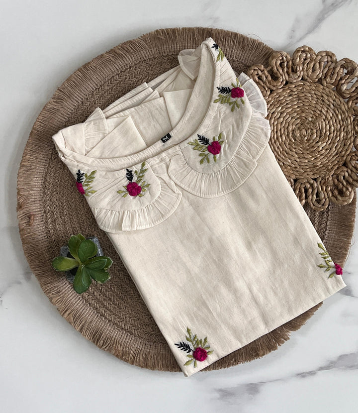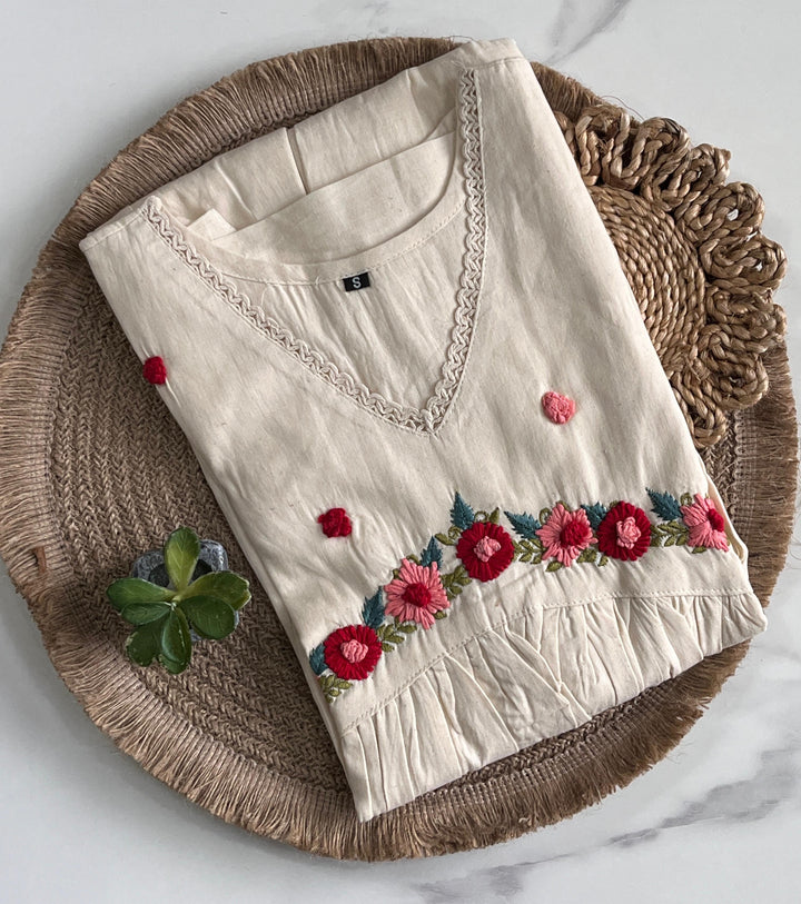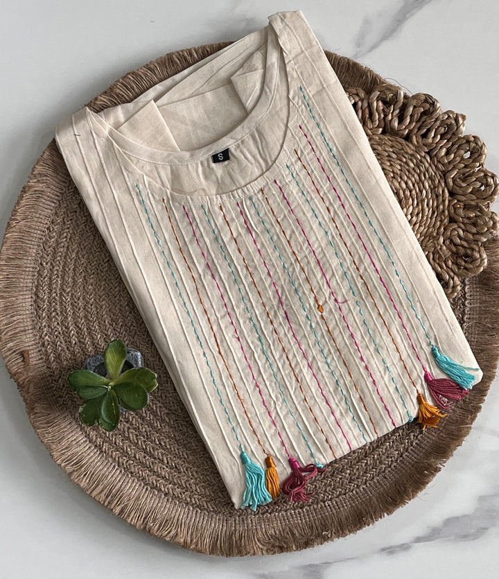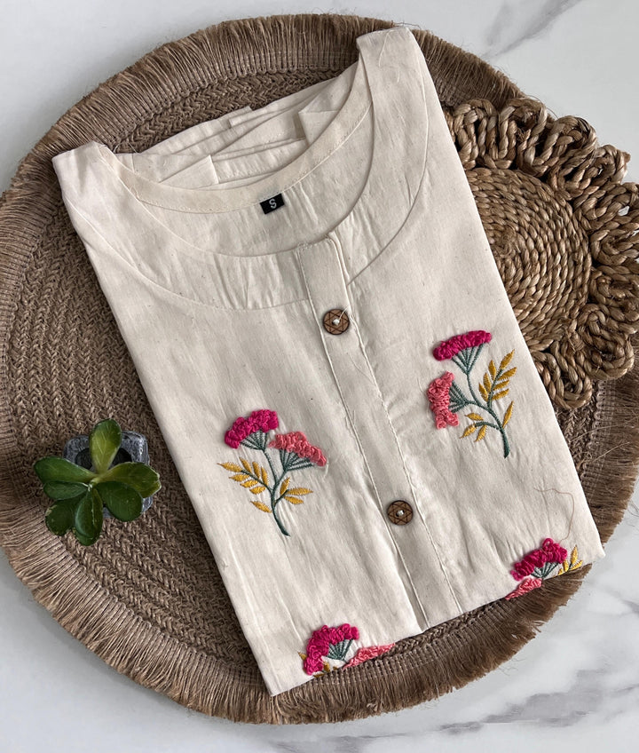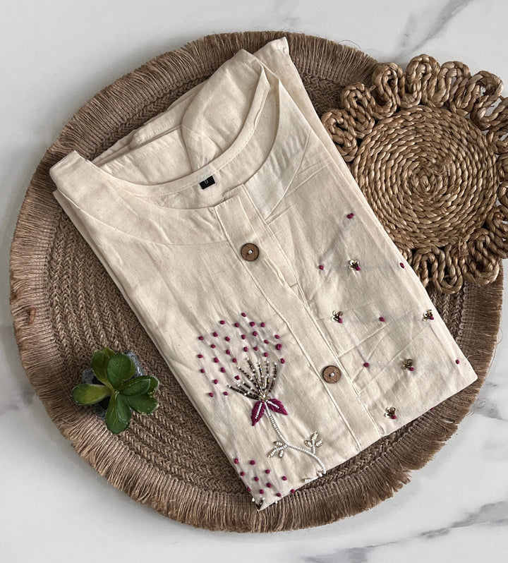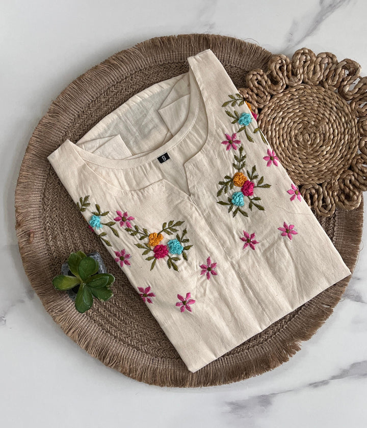 Pure khadi tunic with embroidery handwork & sequence work as shown
