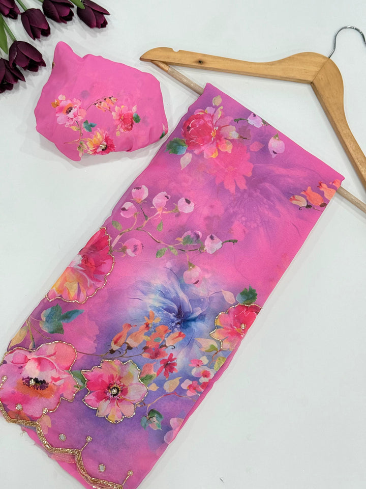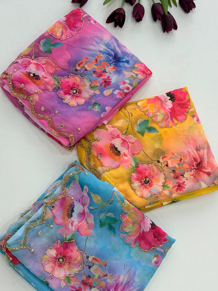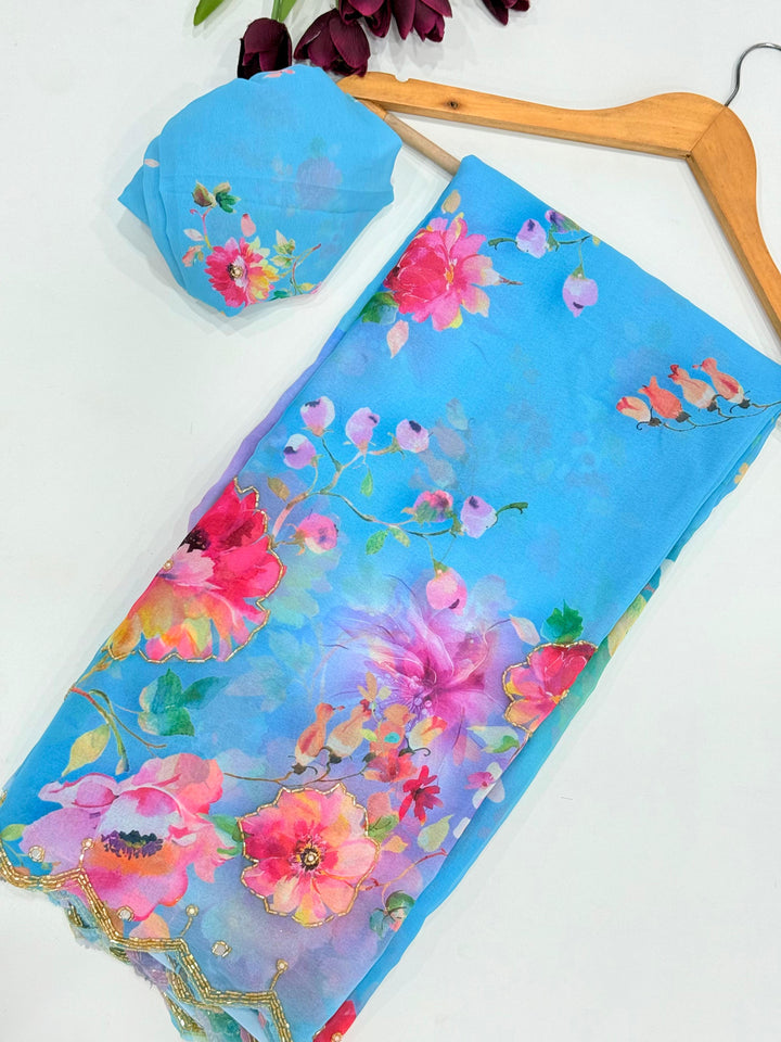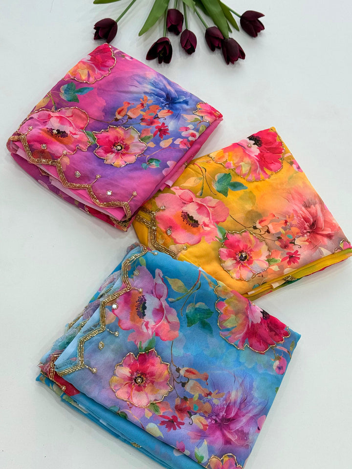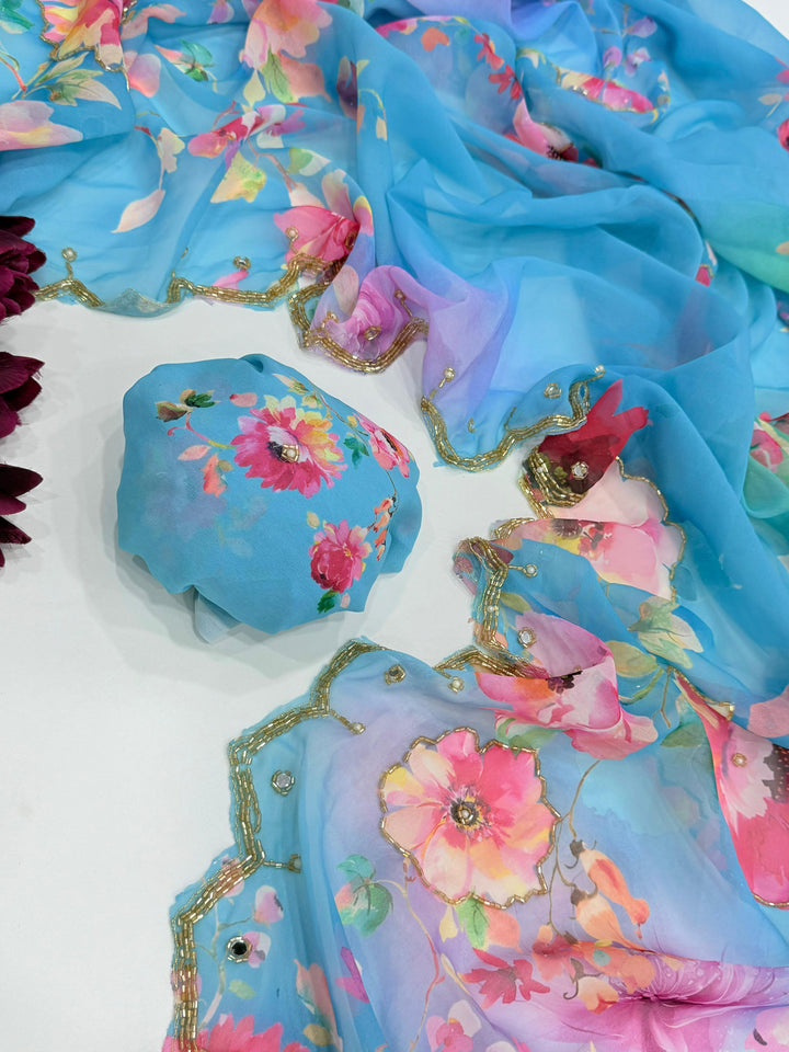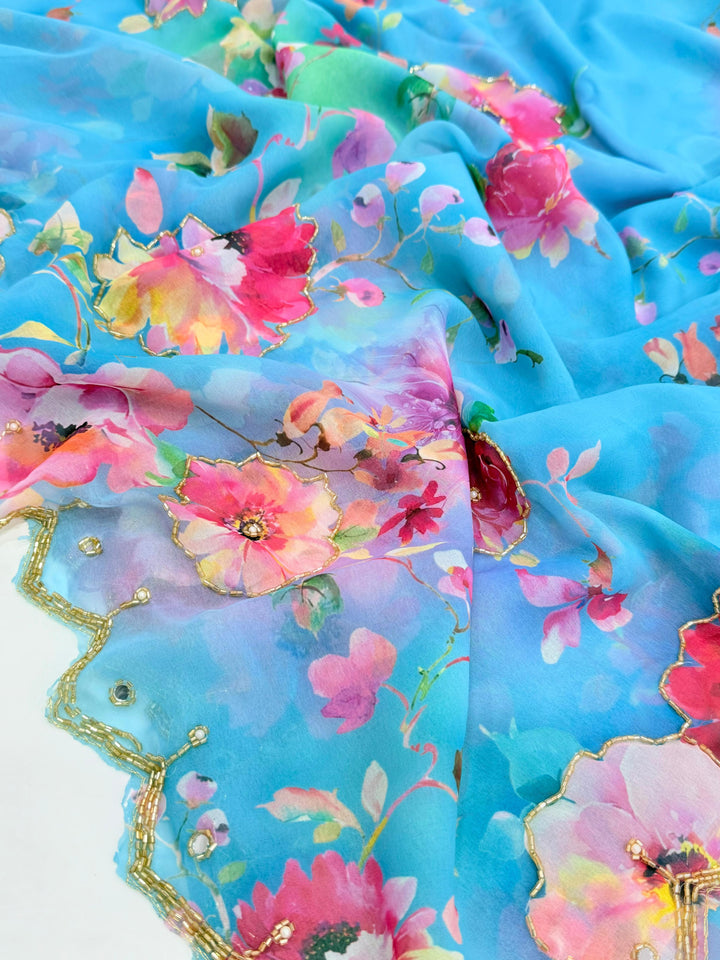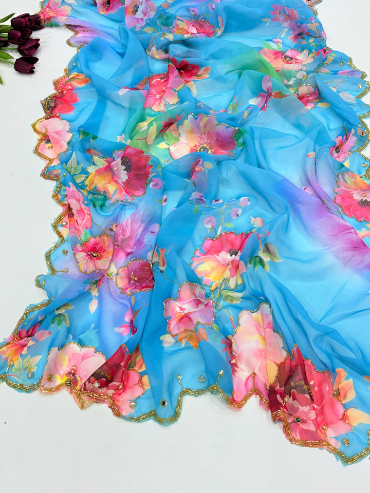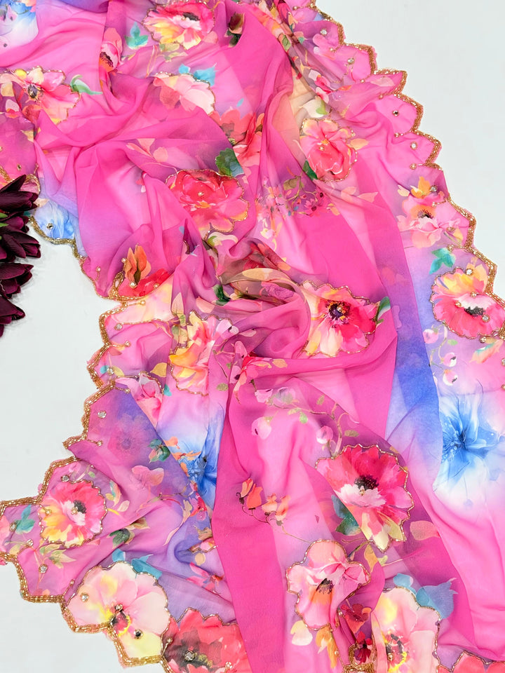 Exclusive Dual Georgette Handwork Saree β Cut Dana & Pearl Elegance