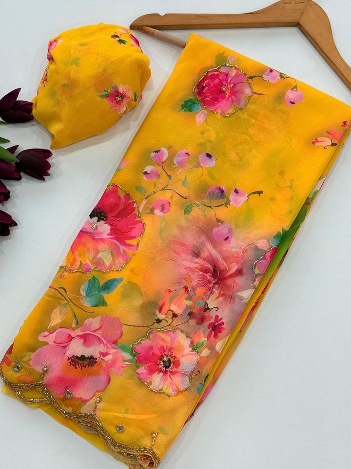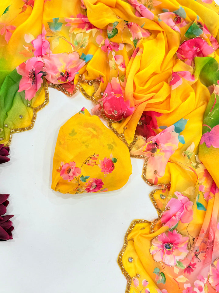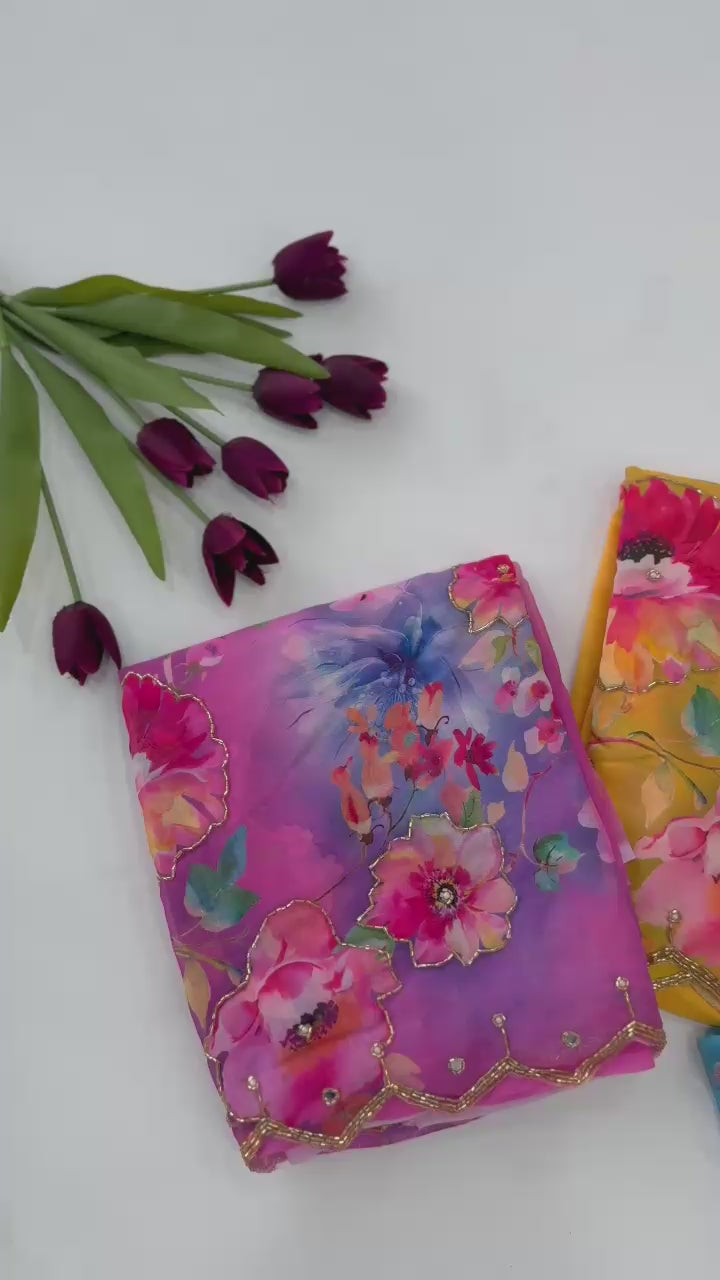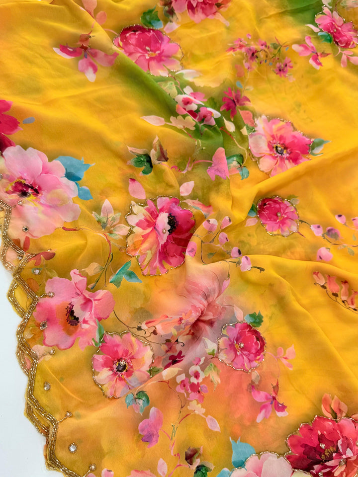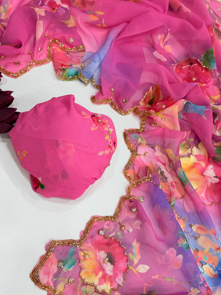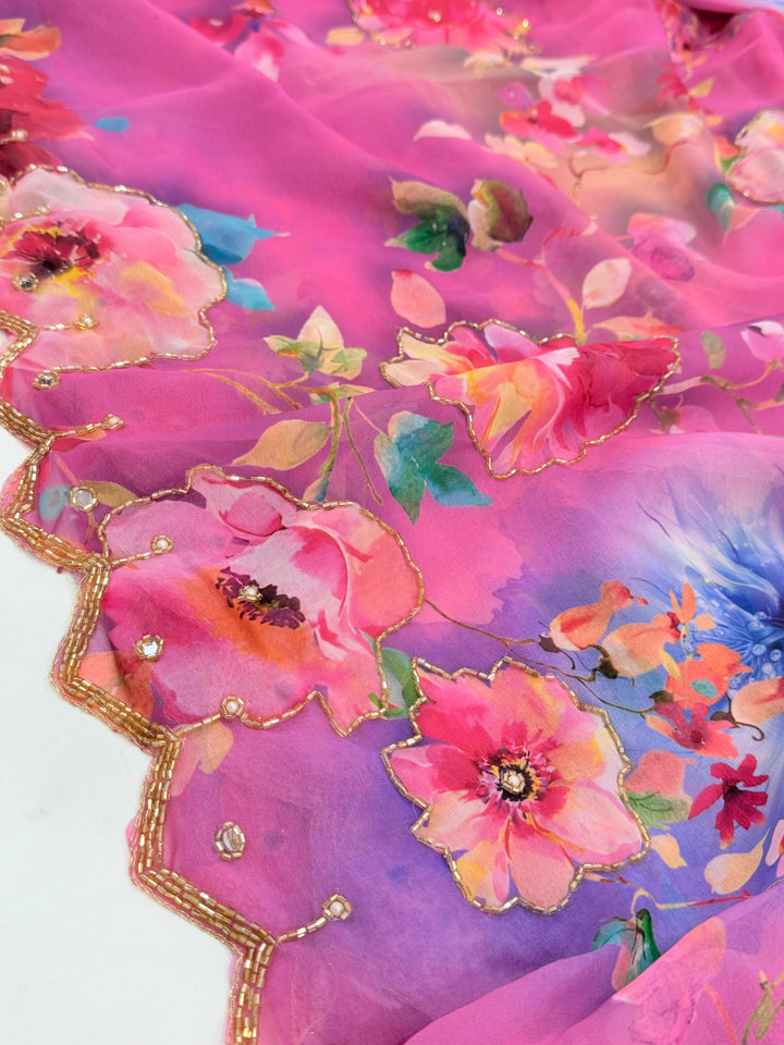 πΈ Saree: Heavy Pure Dual Georgette with Complete Hand Work (Cut Dana & Pearl Work)