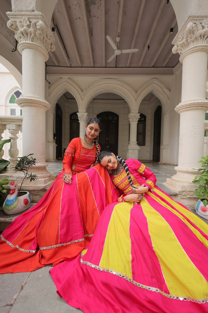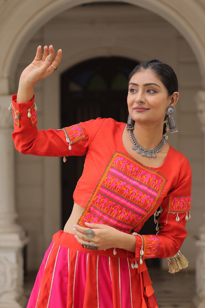 Exquisite Roman Mirror Lace Lehenga & Embroidered Gamthi Thread Work Top Set