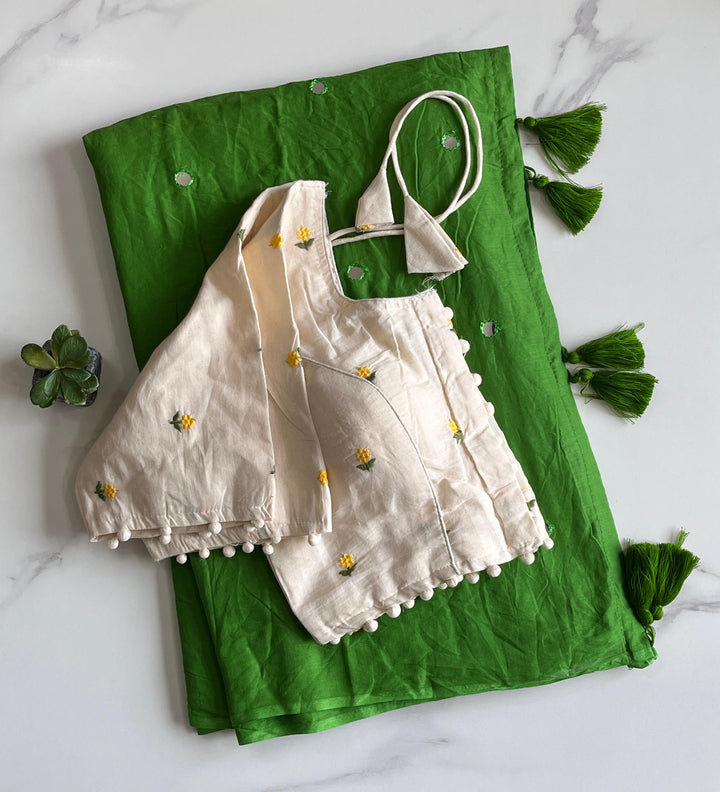 Mul cotton saree with mirror work on all over the saree