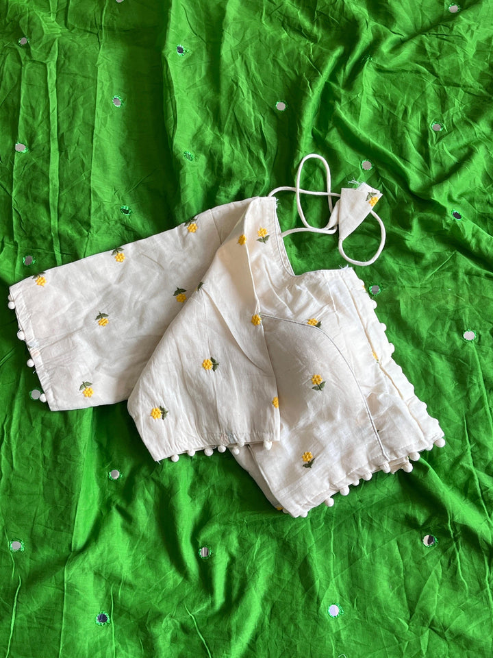 Embroidery work on blouse piece as shown