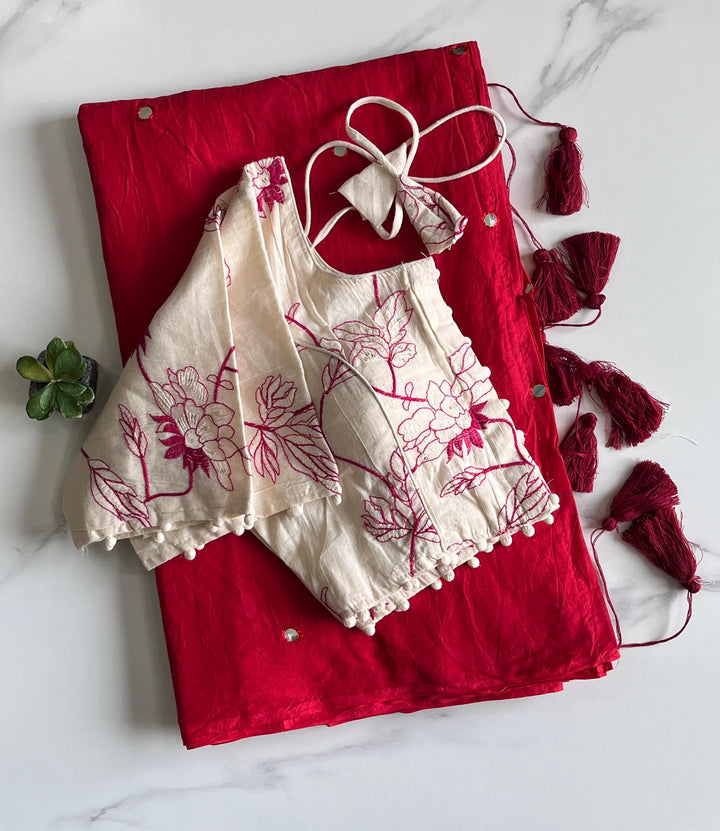 Khadi Cotton Saree with Desginer Stitched Blouse