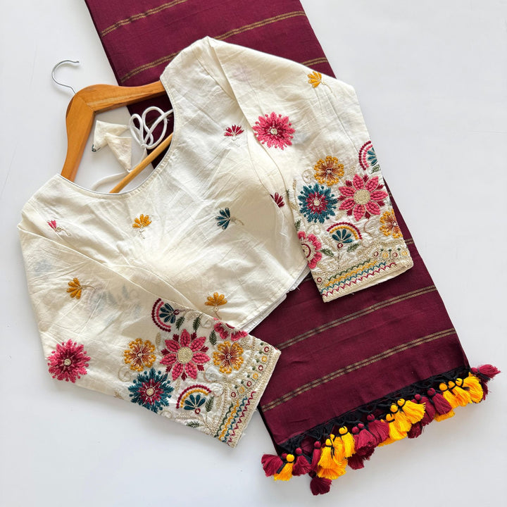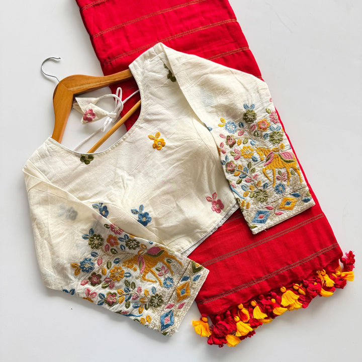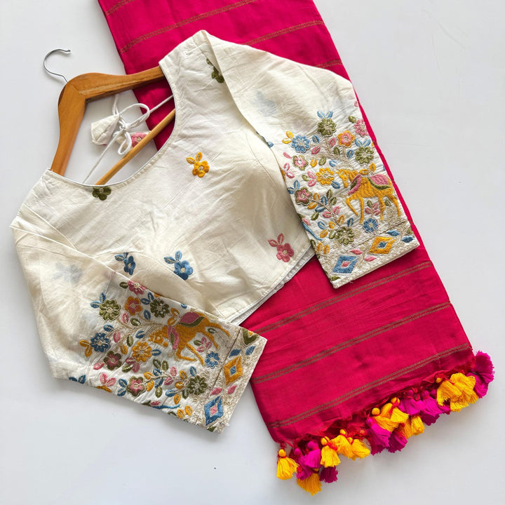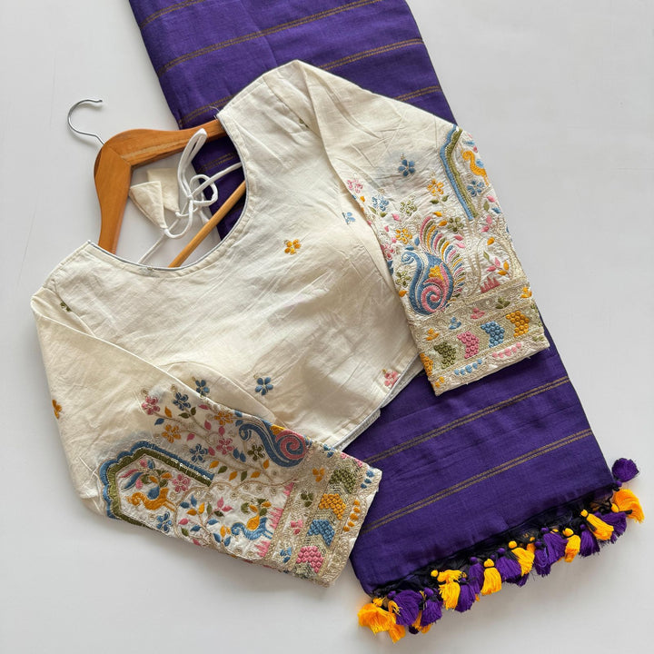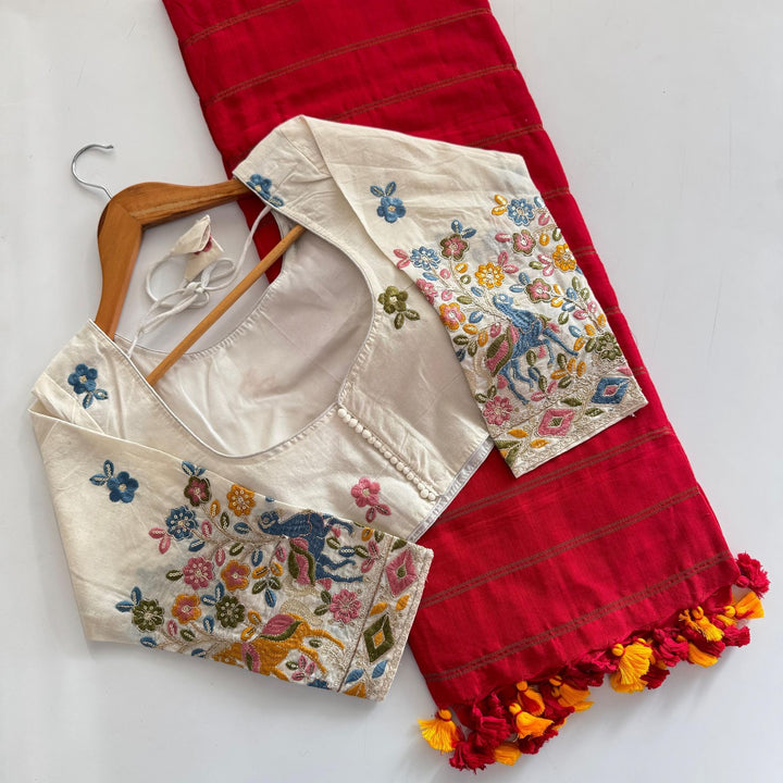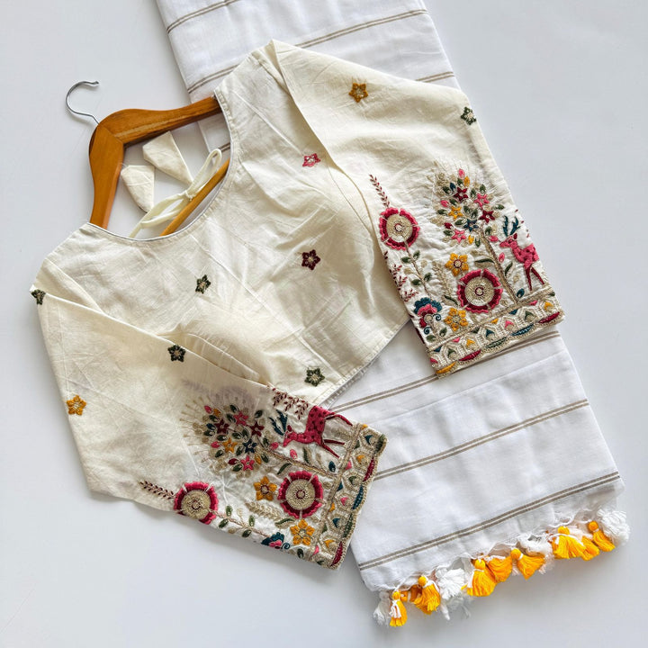 Paired with a gorgeous stitch Khadi blouse. Perfect for traditional elegance.