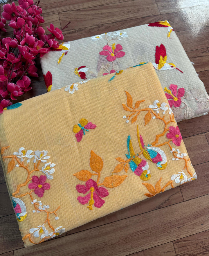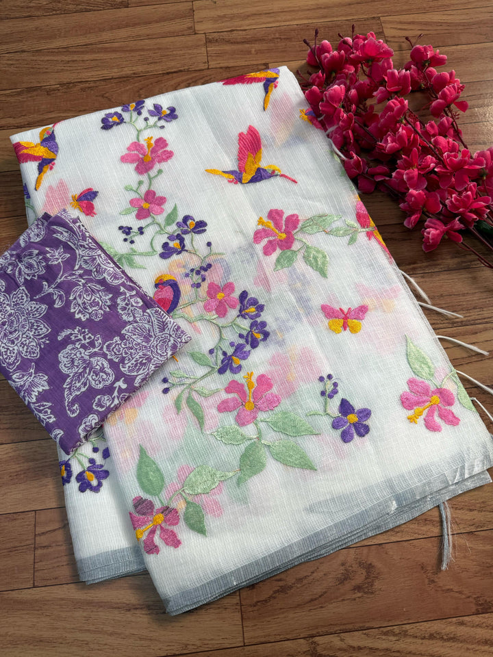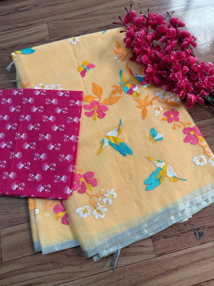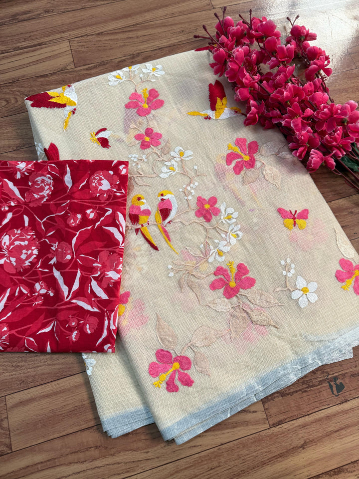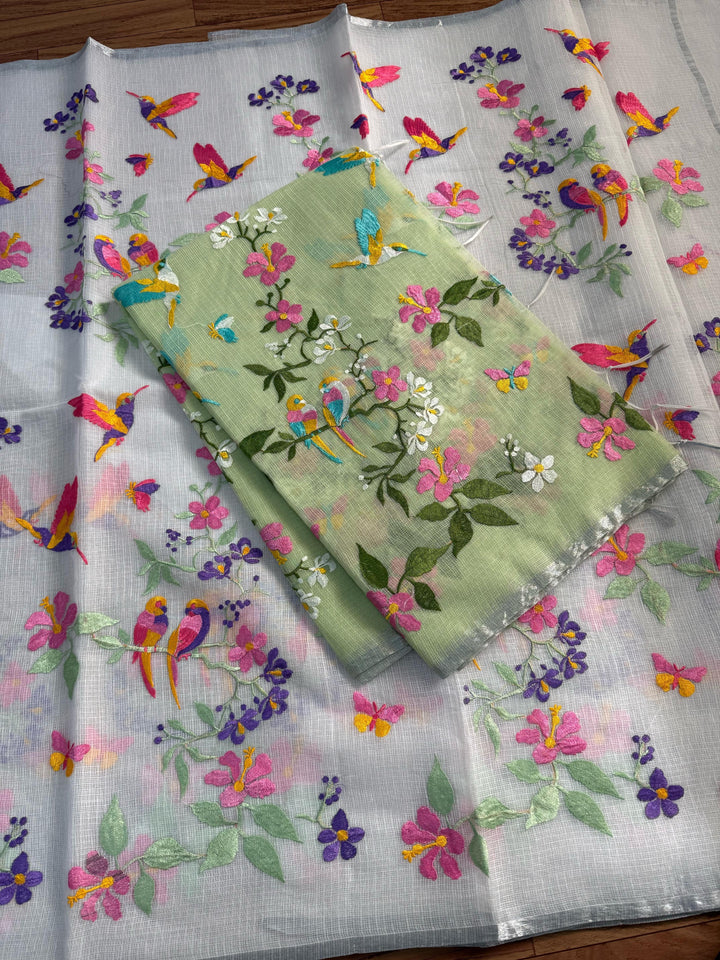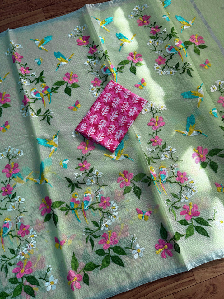 Pure Kota Doria Saree With Thread Embroidery All Over Saree and Running Blouse