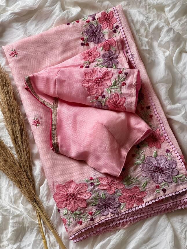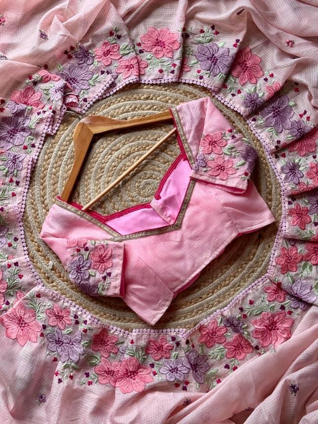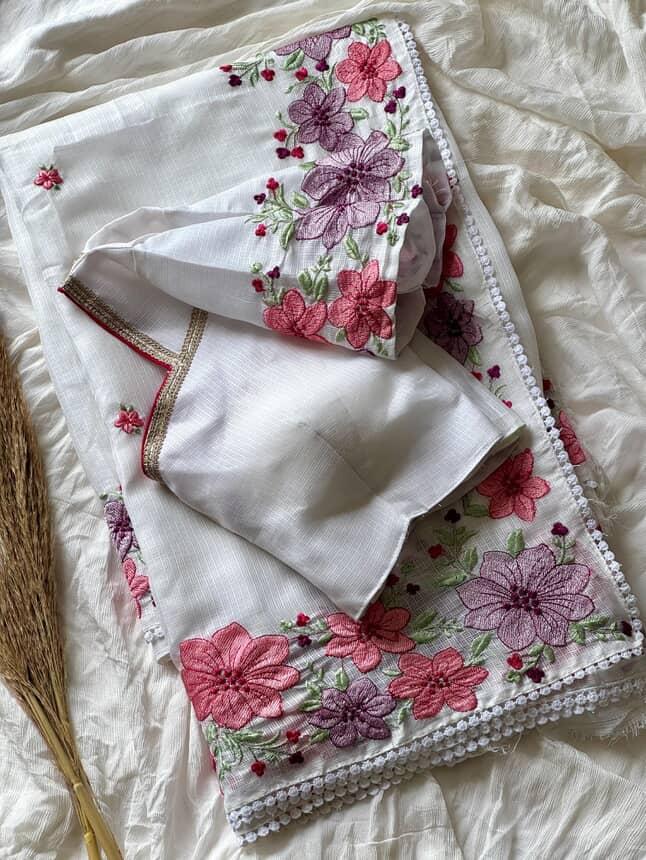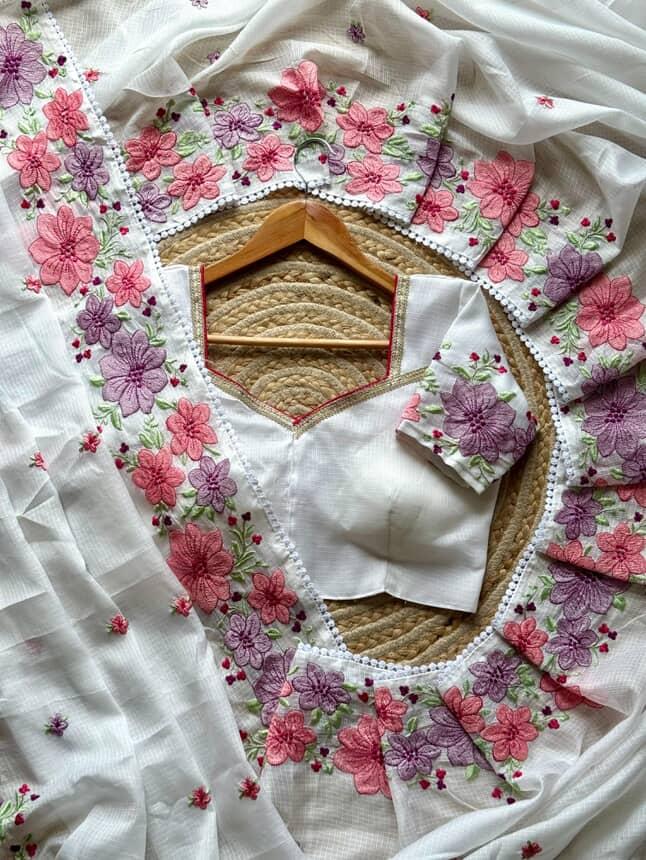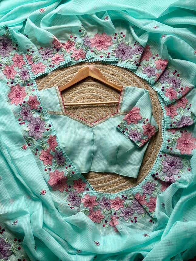 **Soft Kota Cotton* Fabric Along With Designer Multi Threads Work Along With Multi Threaded C - Pallu Design With Fancy Less Border Along With Same Cloth Worked Blouse