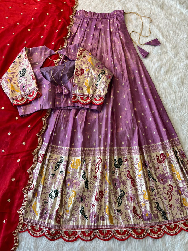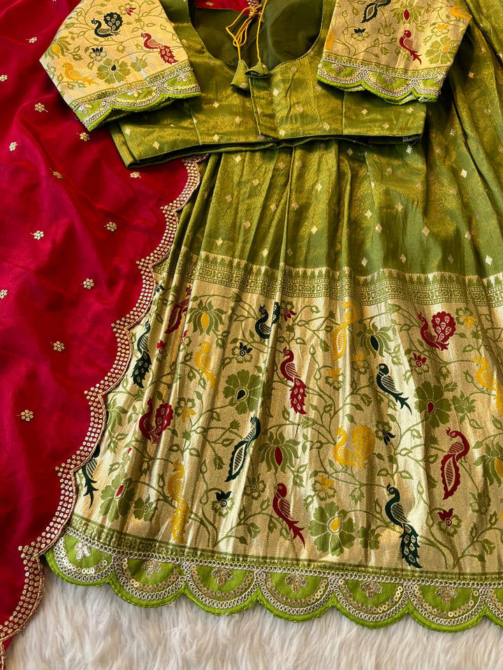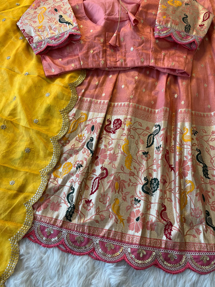 Lehenga Choli with Peacock & Floral Weaving + Heavy Dupatta