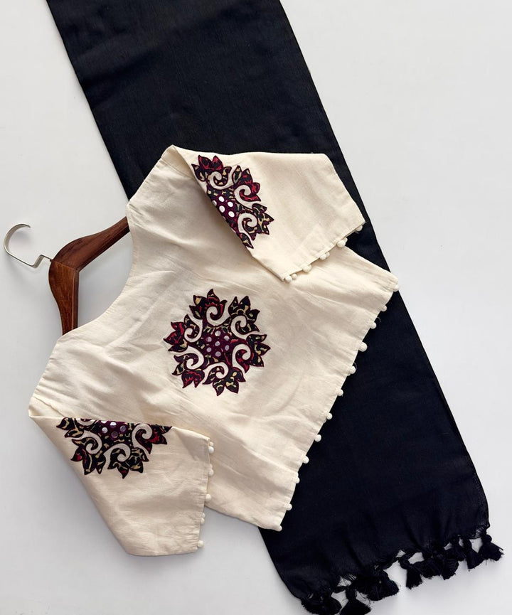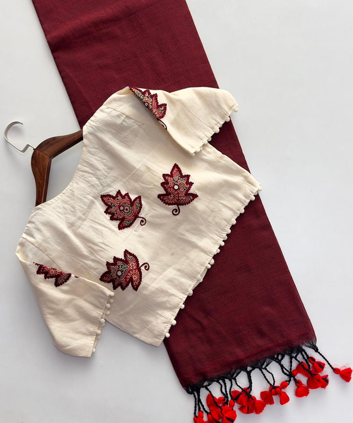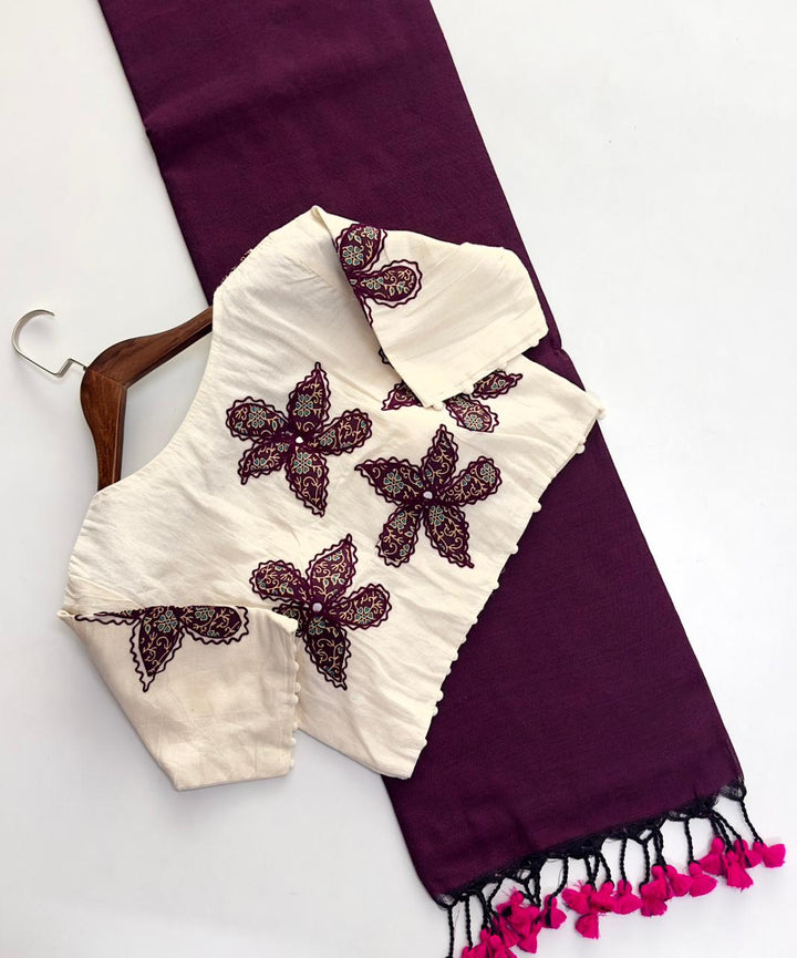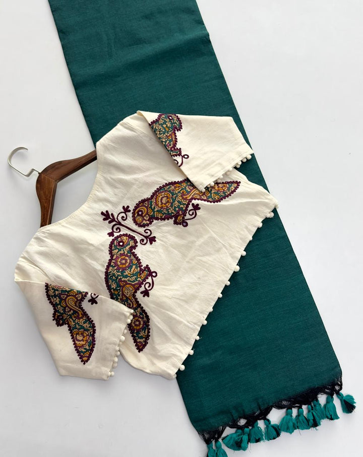 New Designer Pure Khadi Cotton Saree with Heavy Tassels & Floral Thread Work Blouse