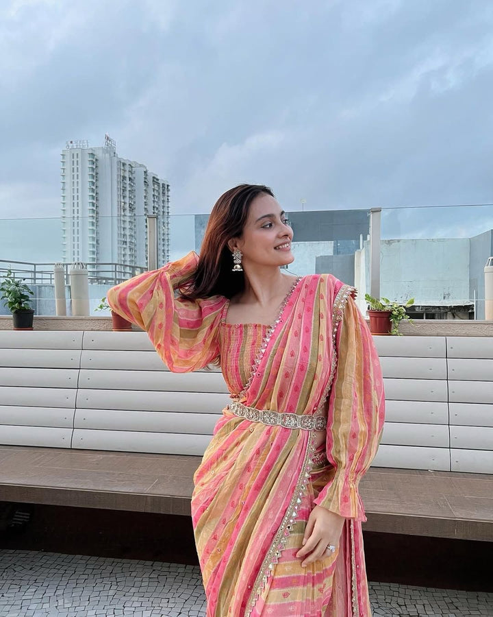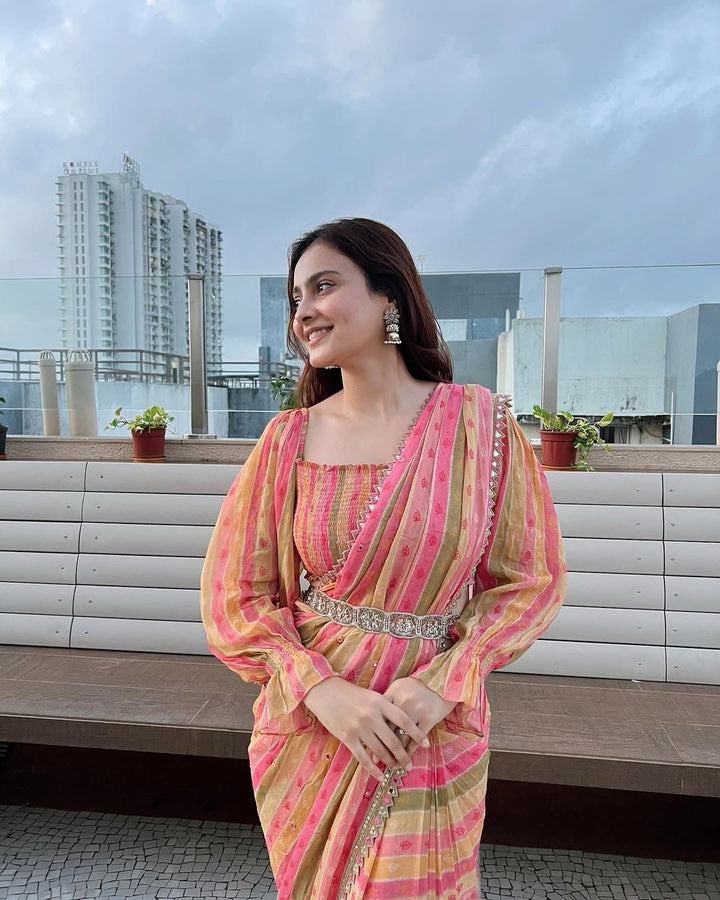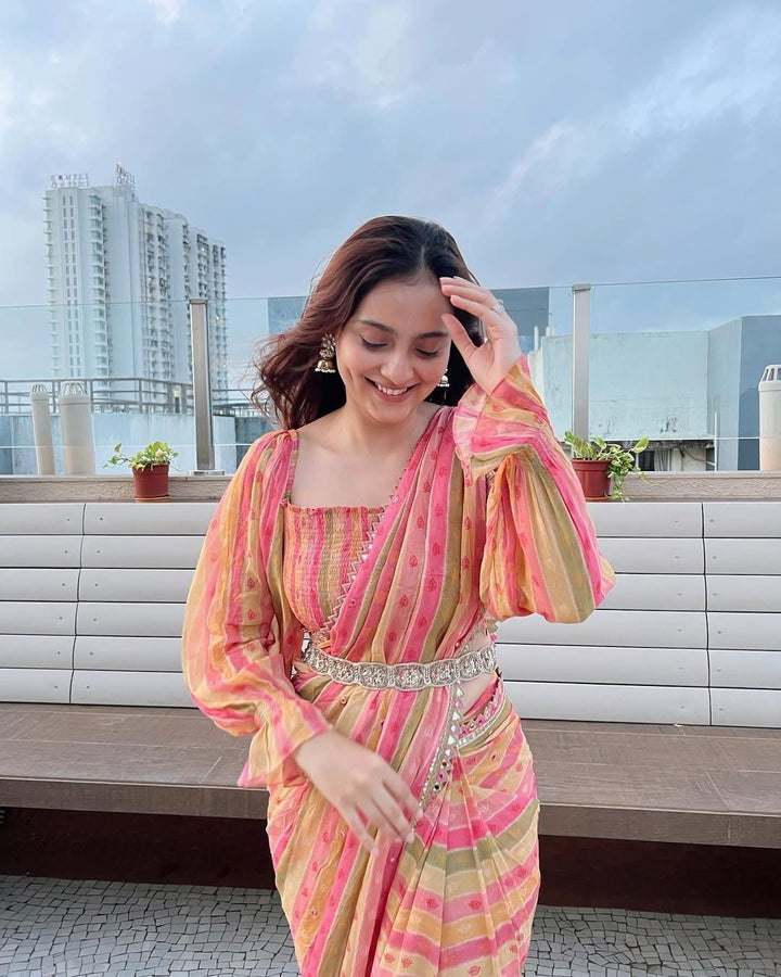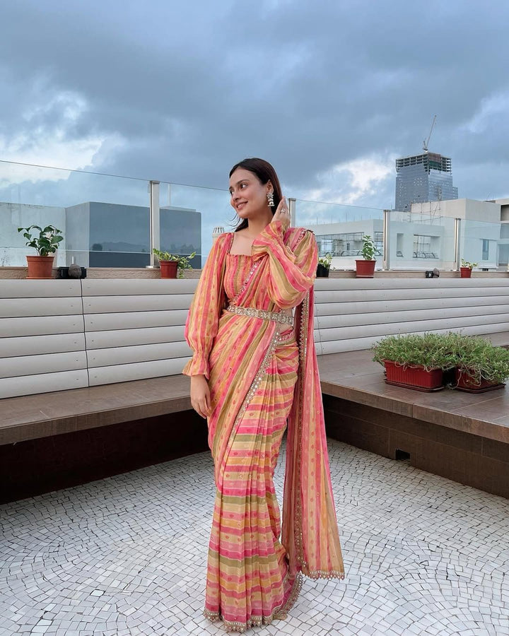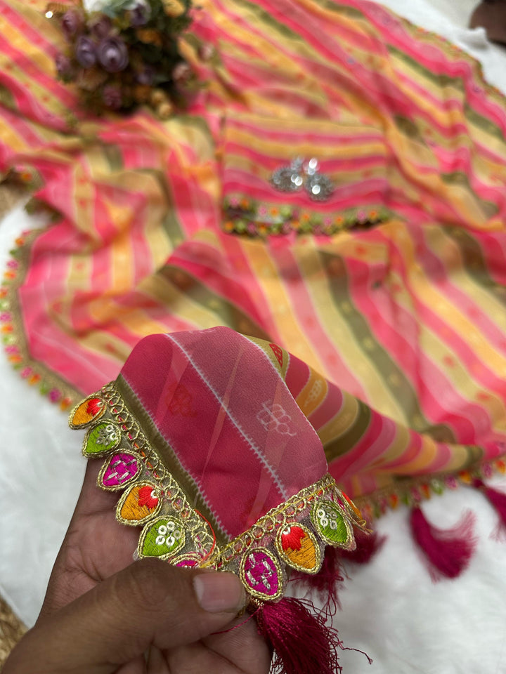 Work :- beautiful digital print with thread and siquance work colorfull lace and beautiful latkan with mirror work in saree..