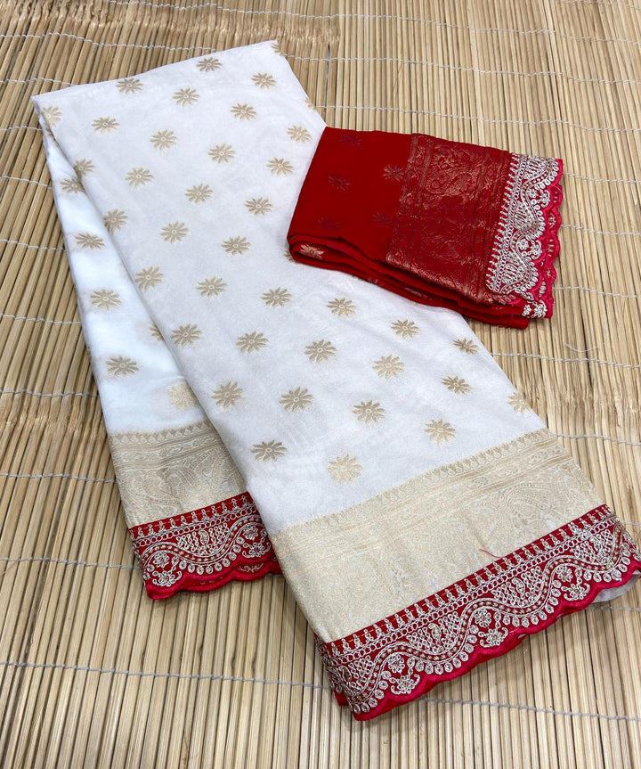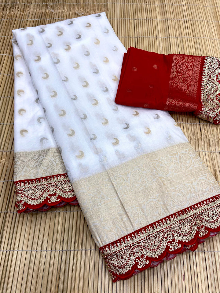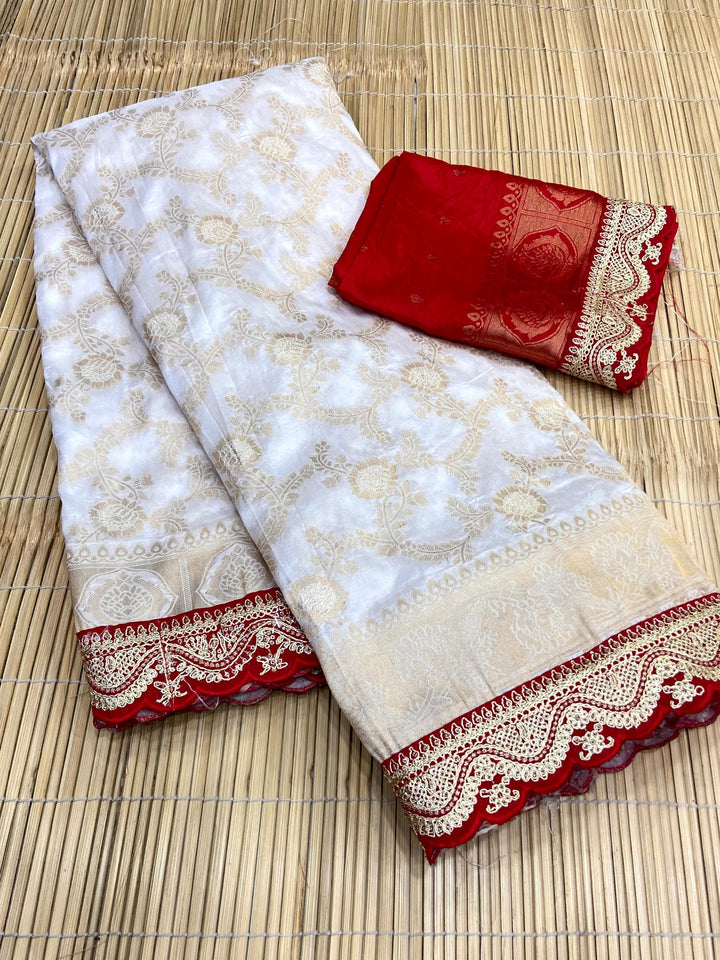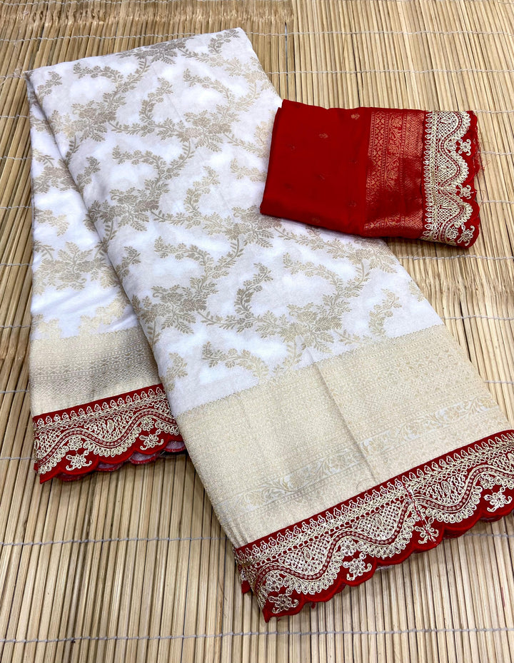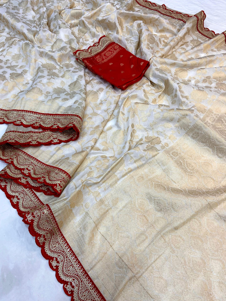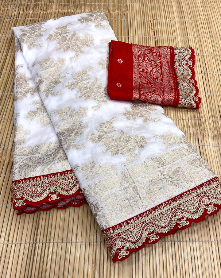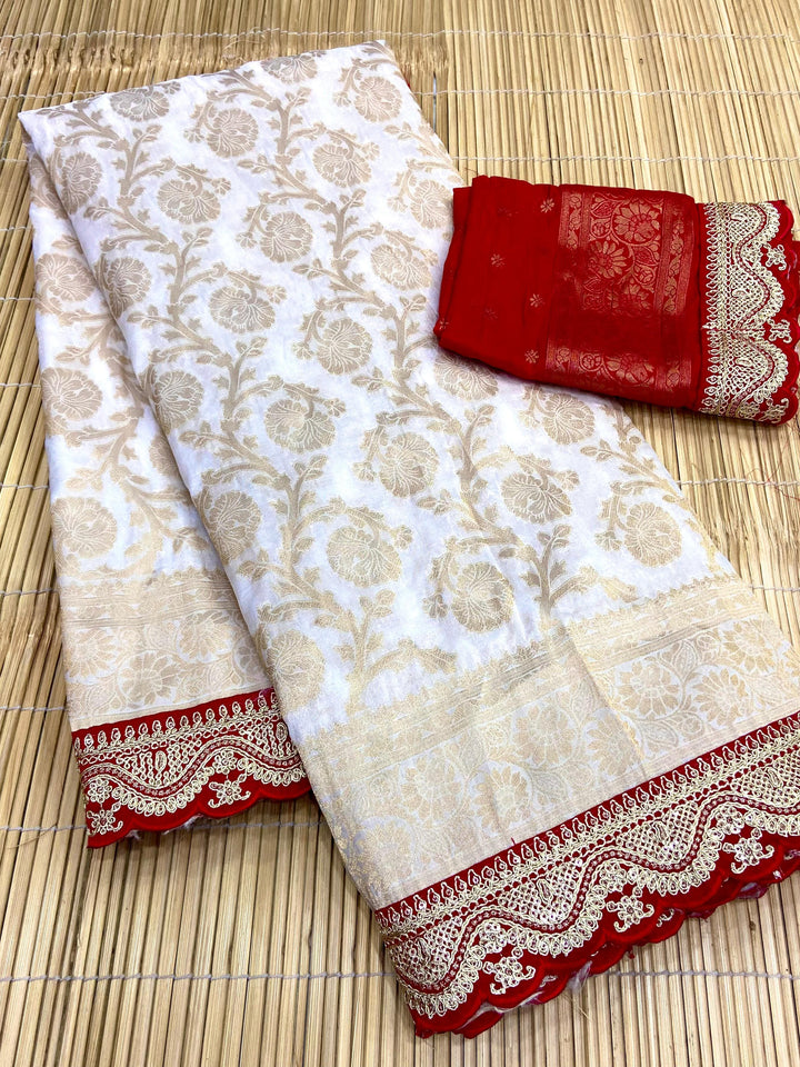 Adorn yourself in this beautiful and charming pure khaddi georgette designer saree in sabyasachi scallop intricate big work borders