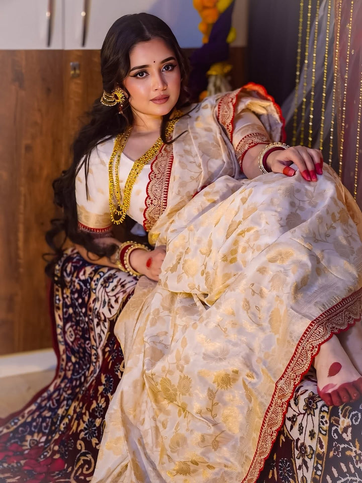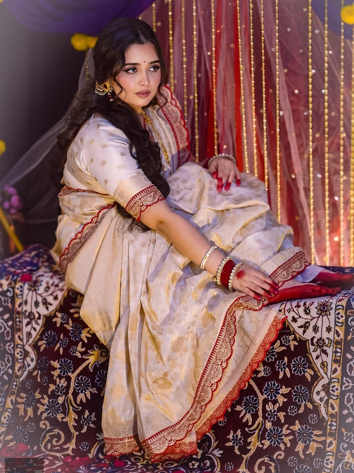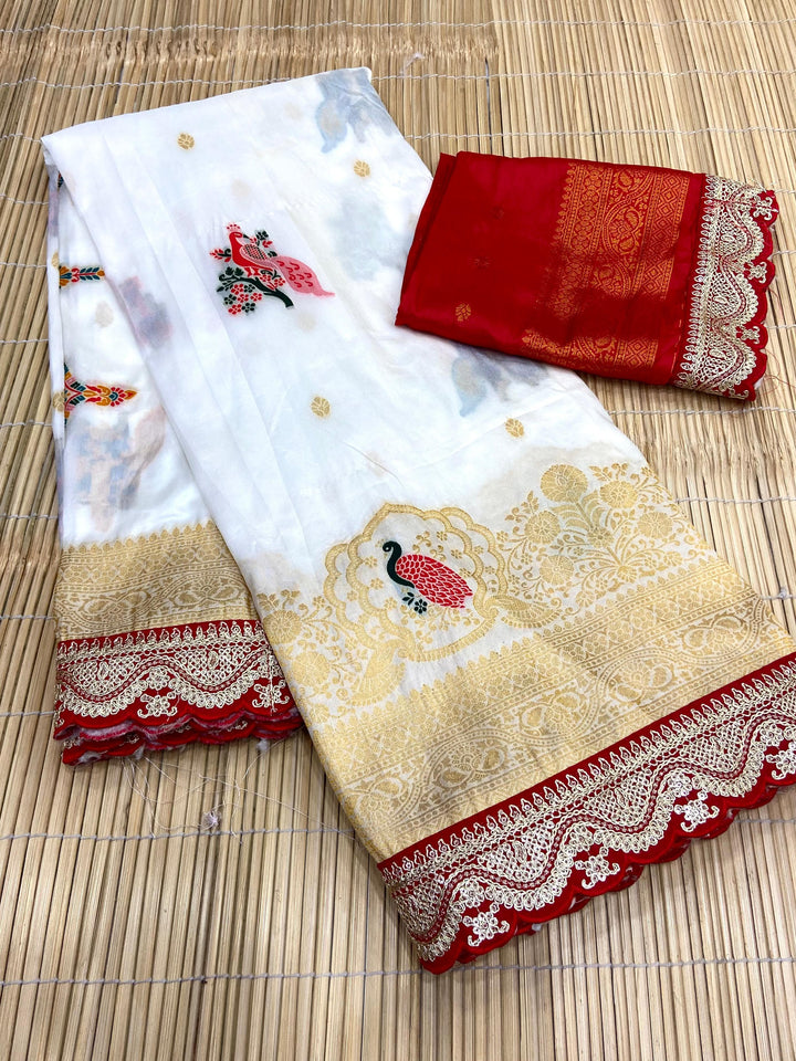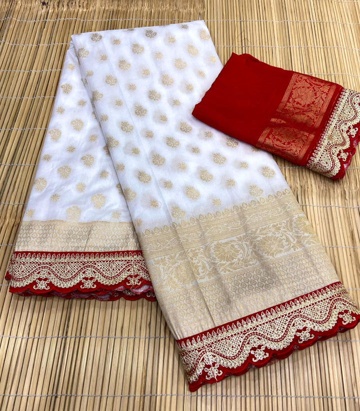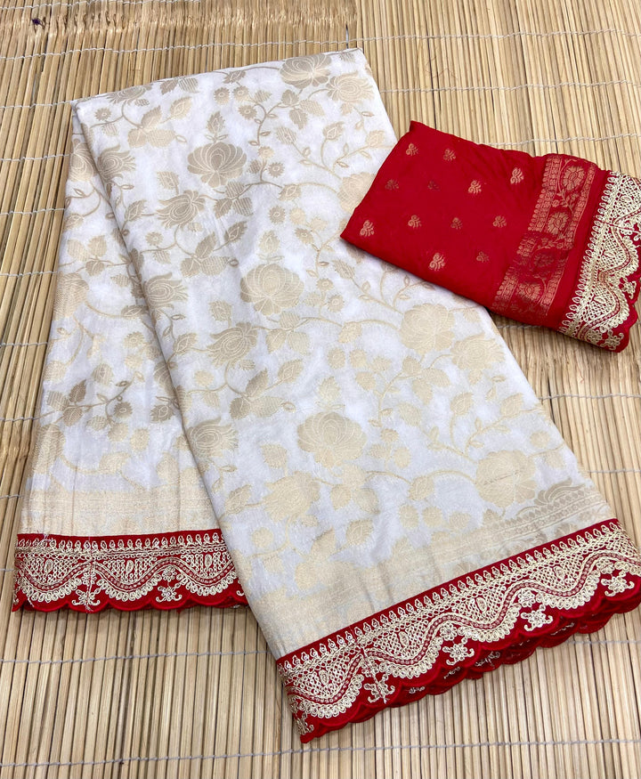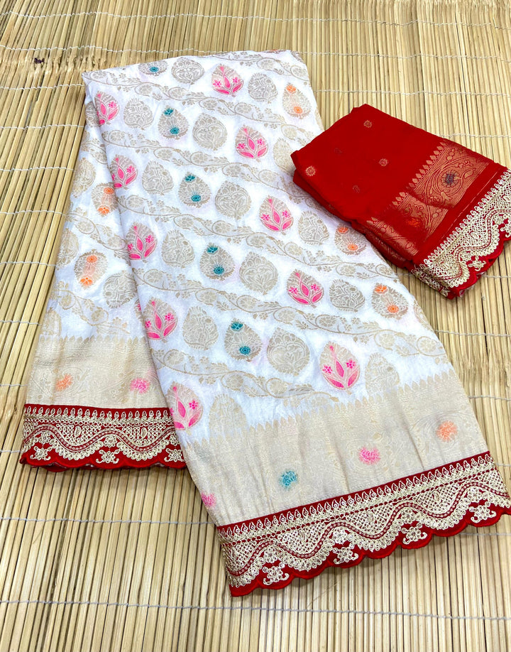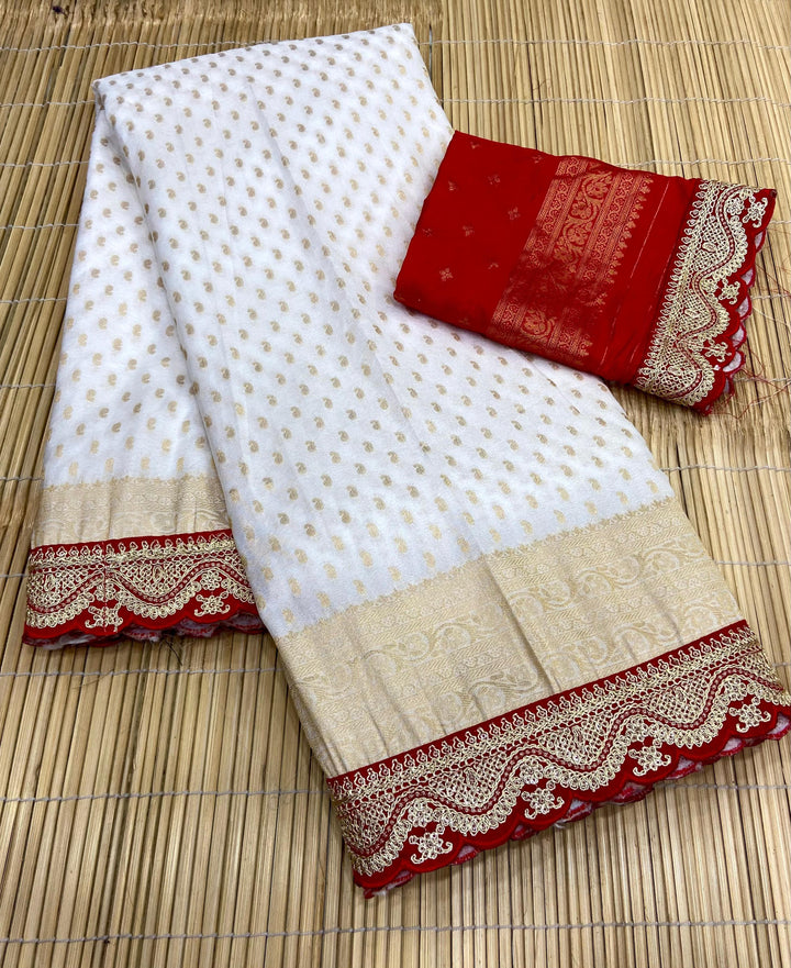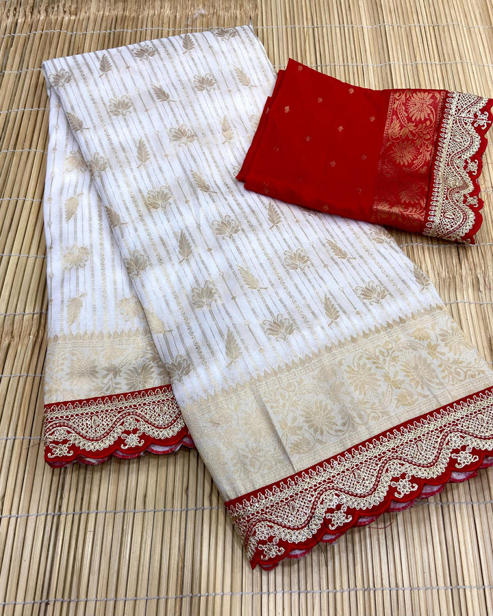 Adorn yourself in this beautiful and charming pure khaddi georgette designer saree in sabyasachi scallop intricate big work borders