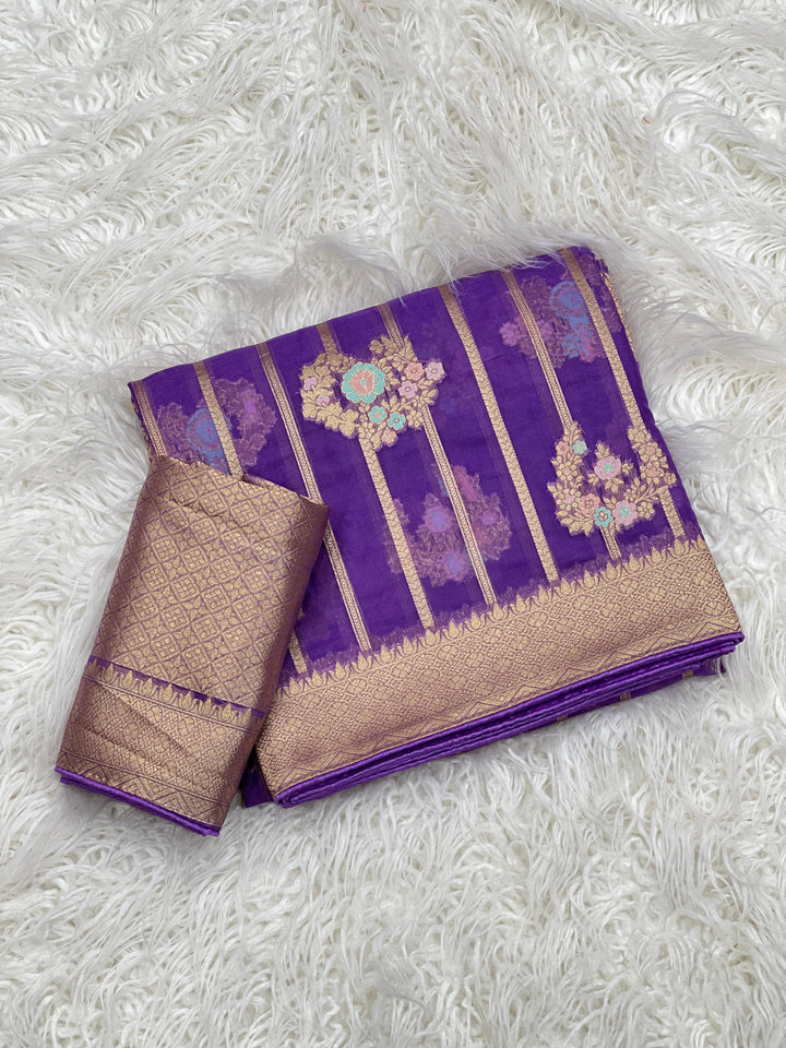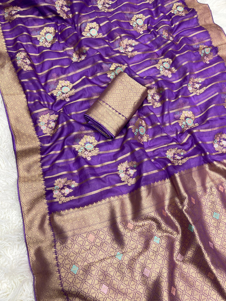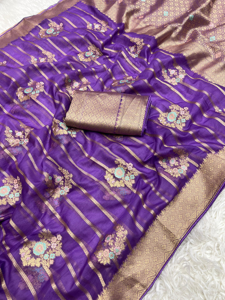 🌺 The *rich and high quality soft, flowing pure kora simmer silk sarees with _meenakari n Zari Weaving body and Zari Pallu woven pairs_with pipeng