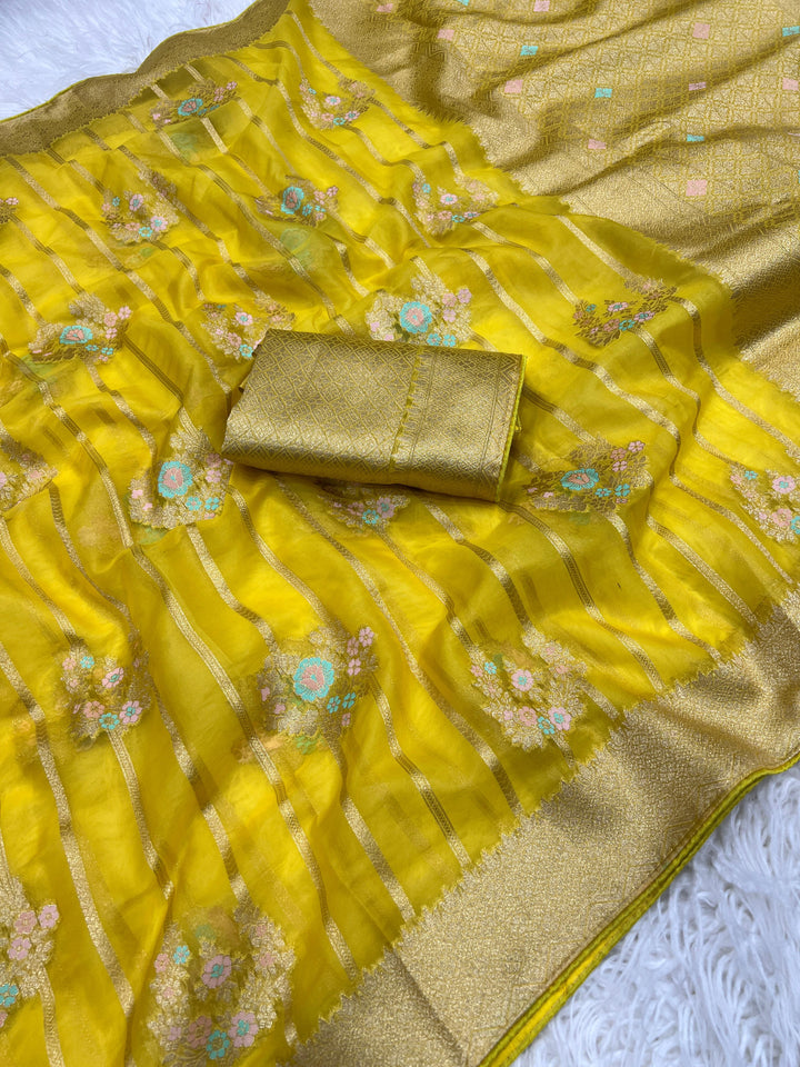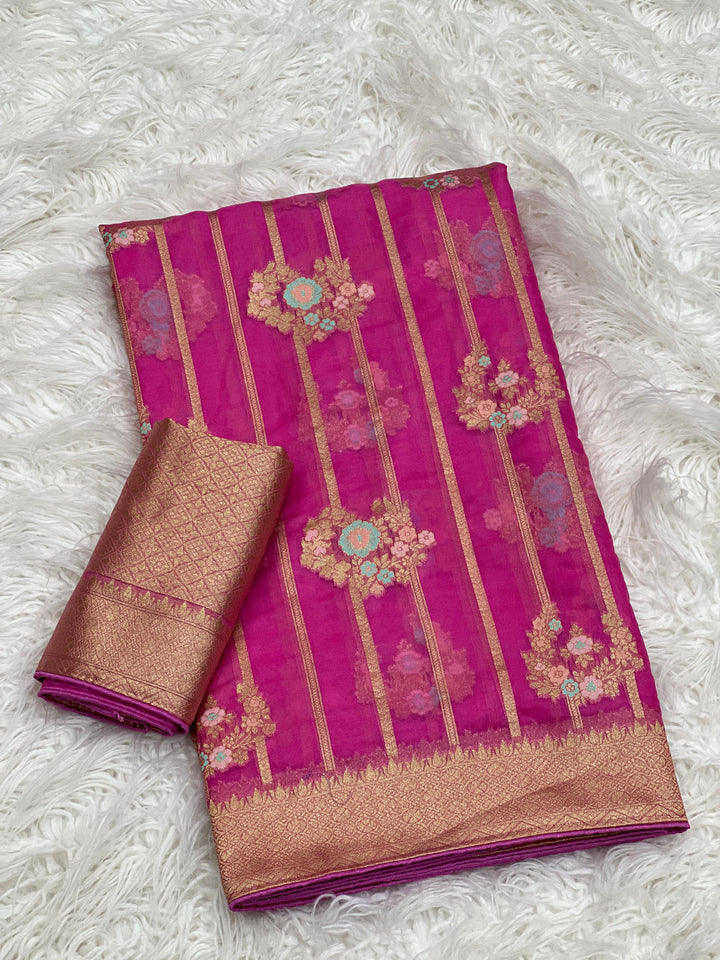 🔺Saree Fabrics:- Pure Kora Simmer silk (Heavy)