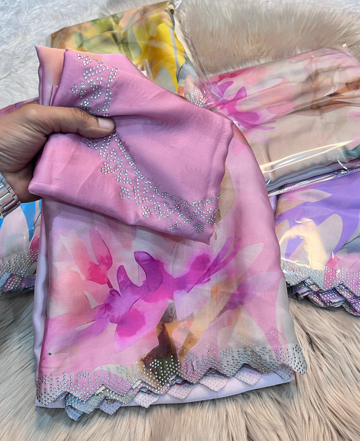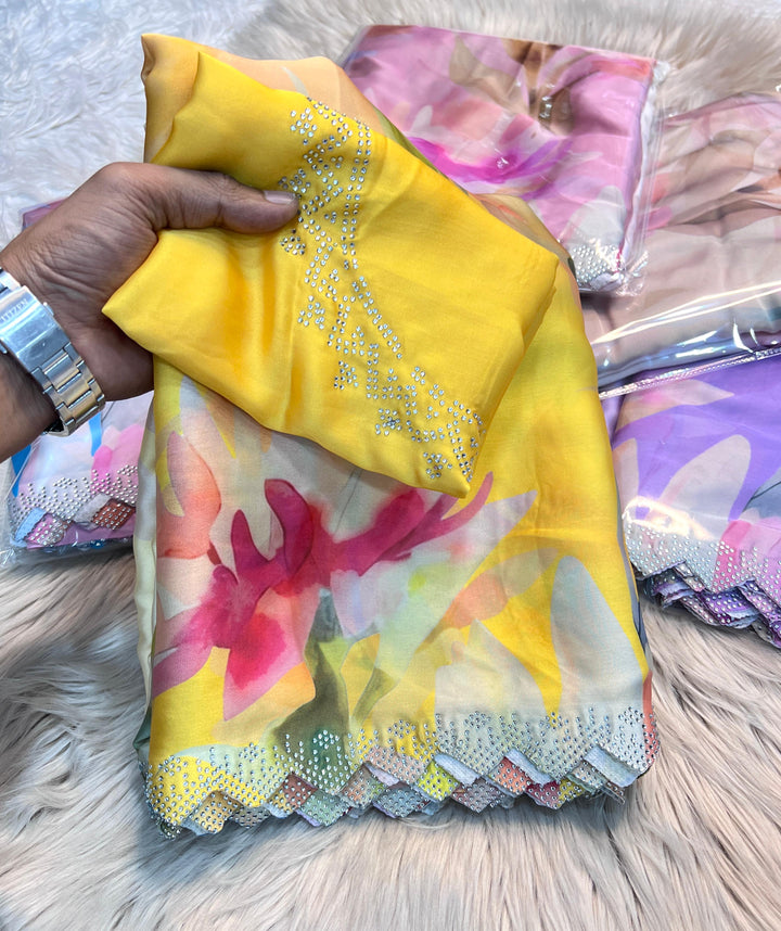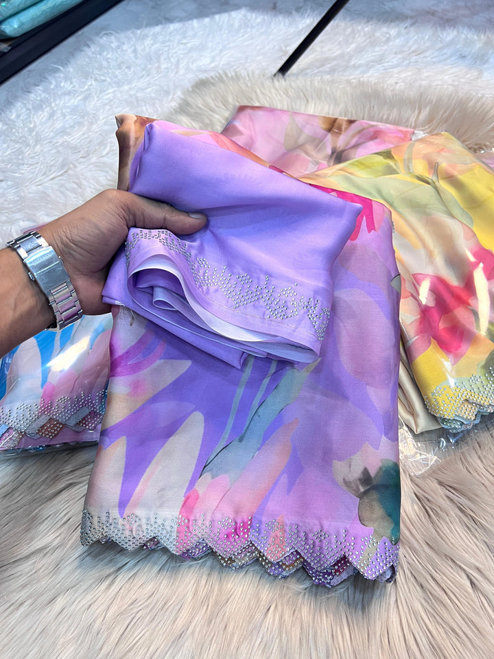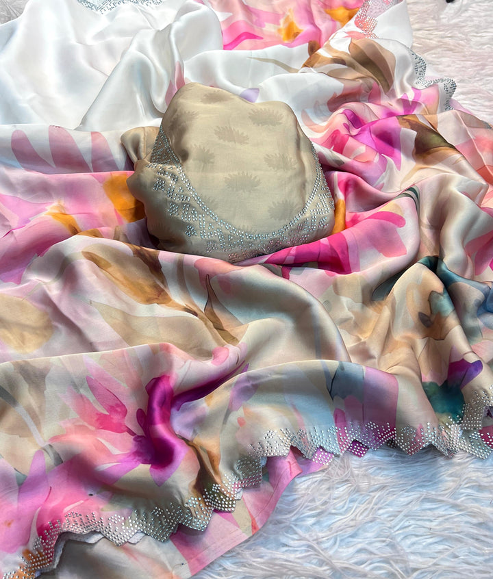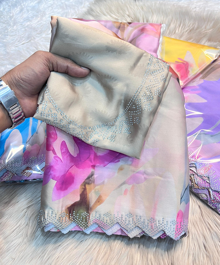Pure Maheshwari Silk With Cut Work & Diamond 💎 Work Saree With Border & FANCY Diamond 💎 Work Blouse 👚