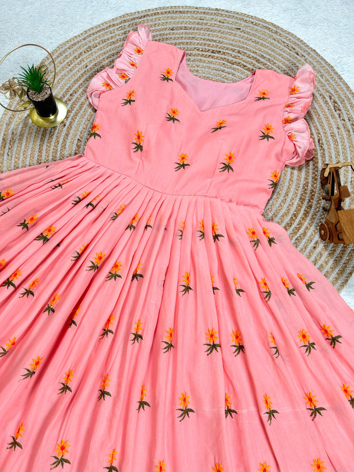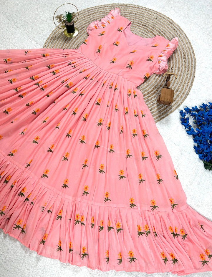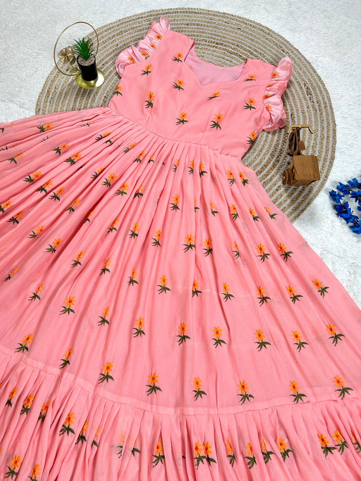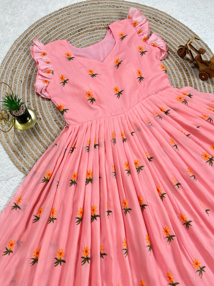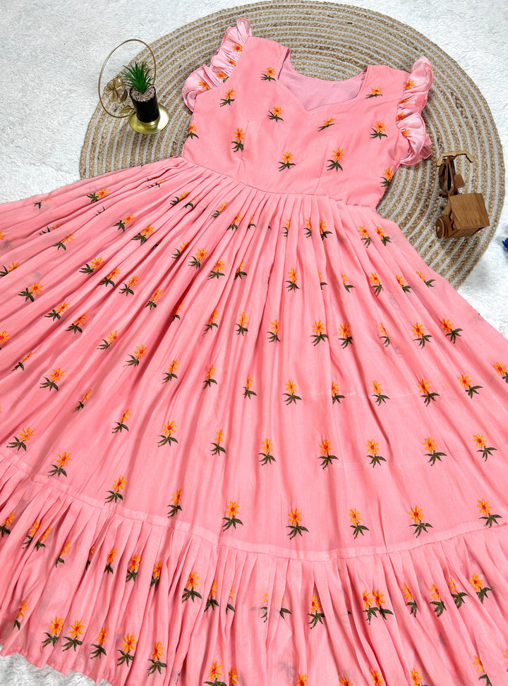 Pure Mul Mul Cotton Gown With Embroidery Thread Work