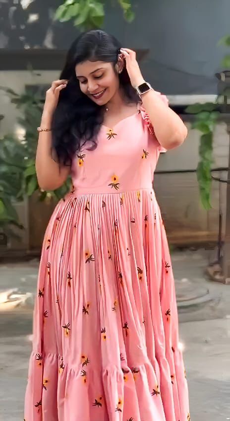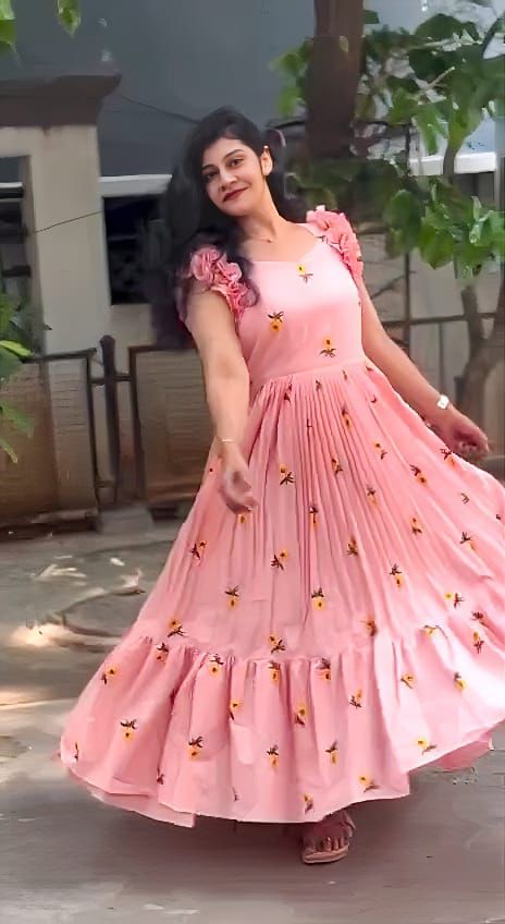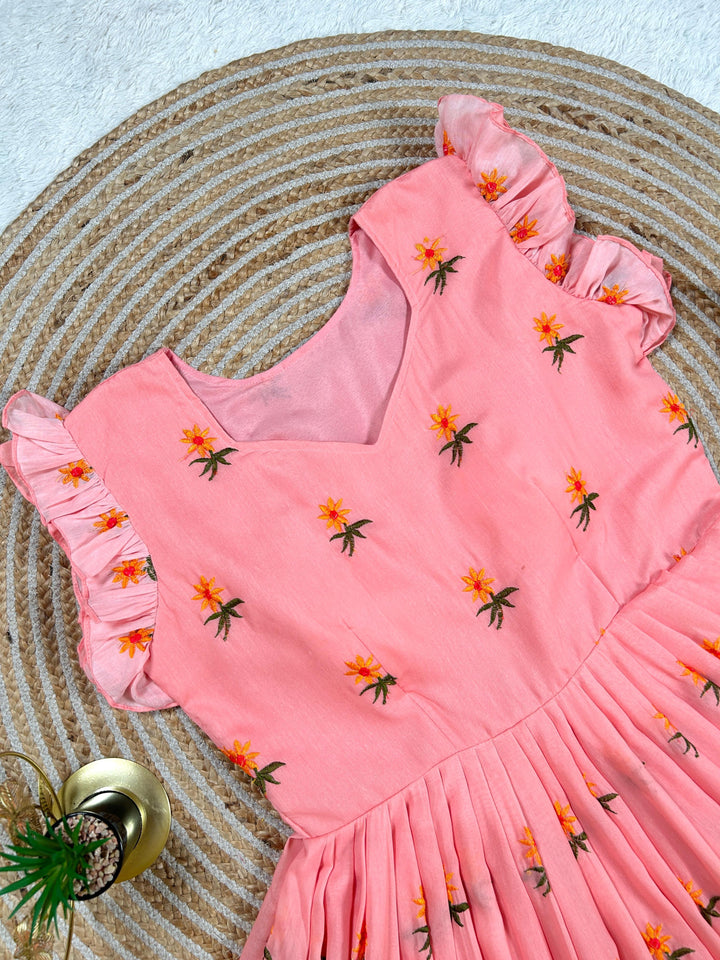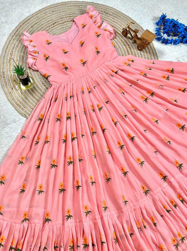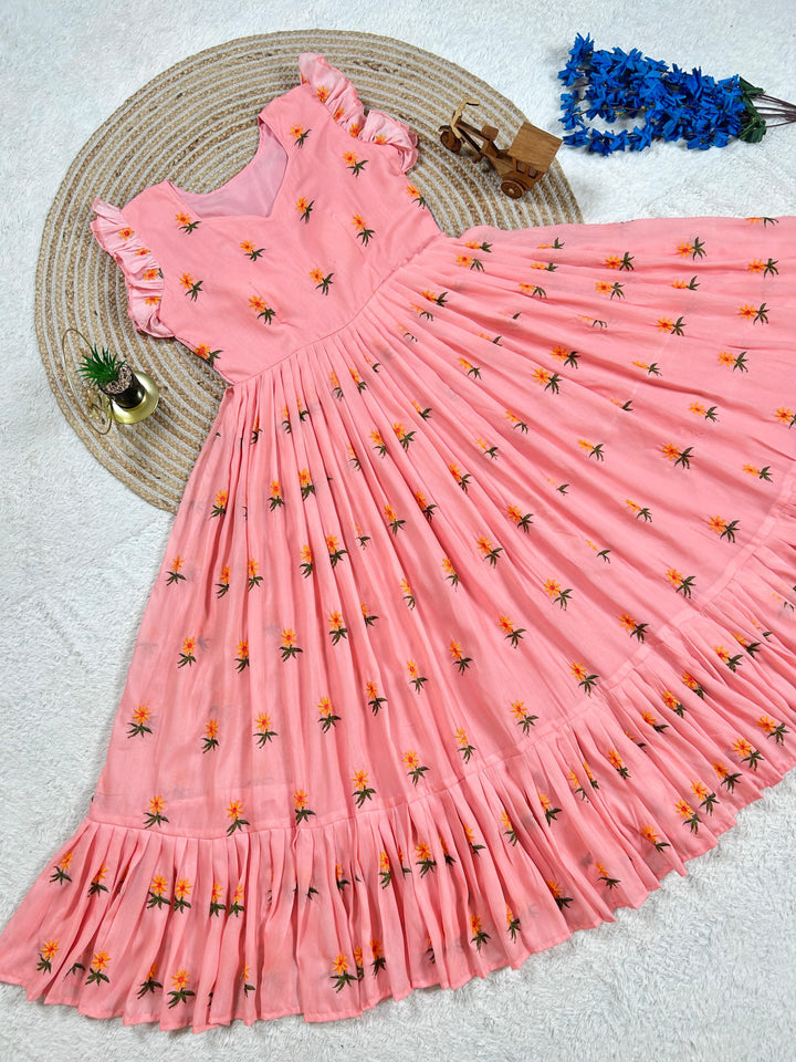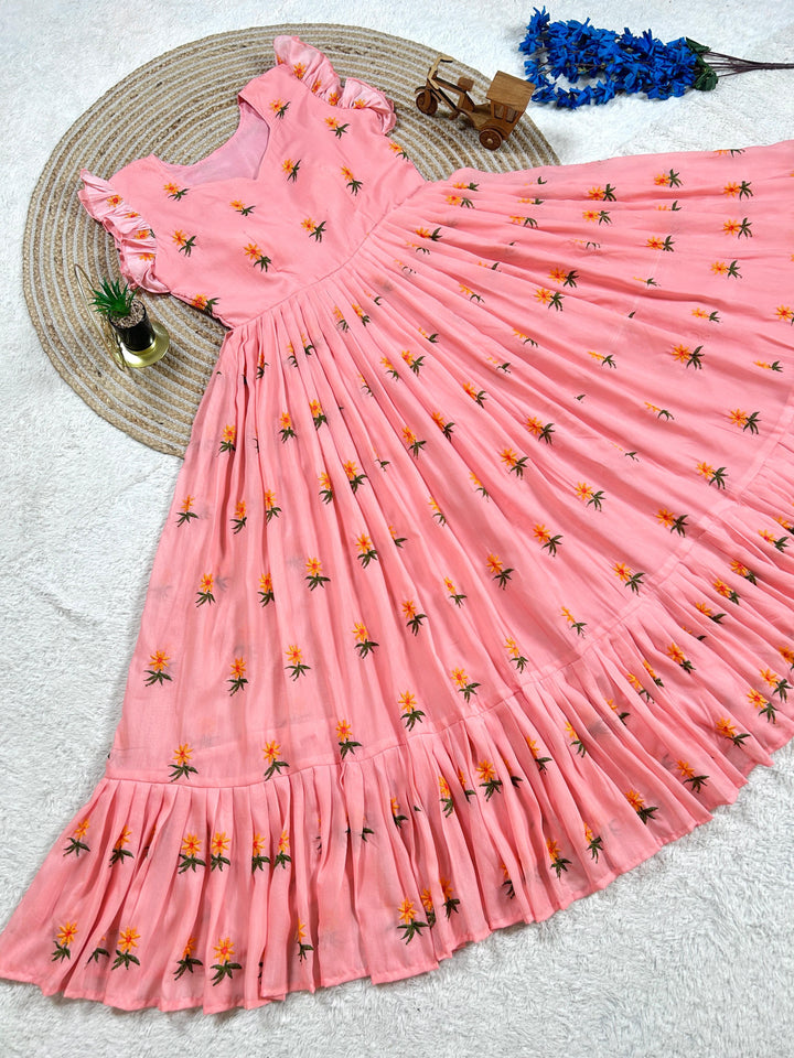 Pure Mul Mul Cotton Gown With Embroidery Thread Work