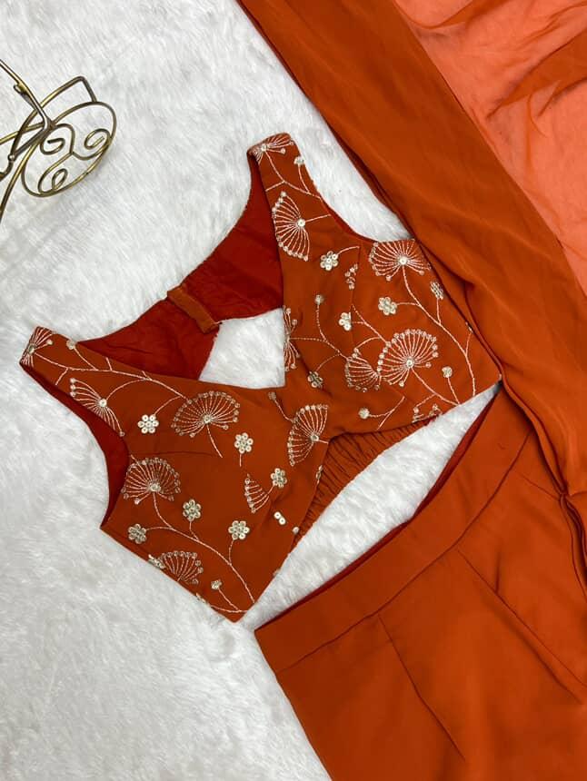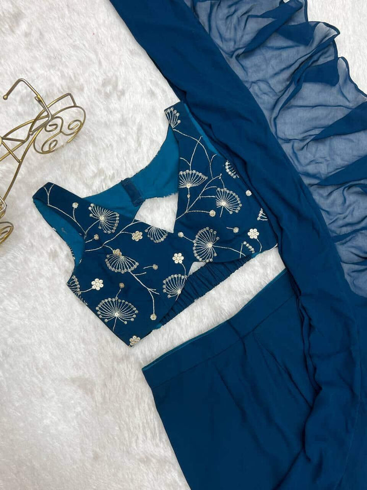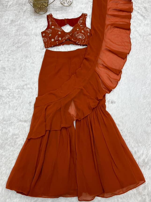 *Ready To Wear Sharara Saree With Full Sttiched Blouse Premium Fox Georgette Fabric*
