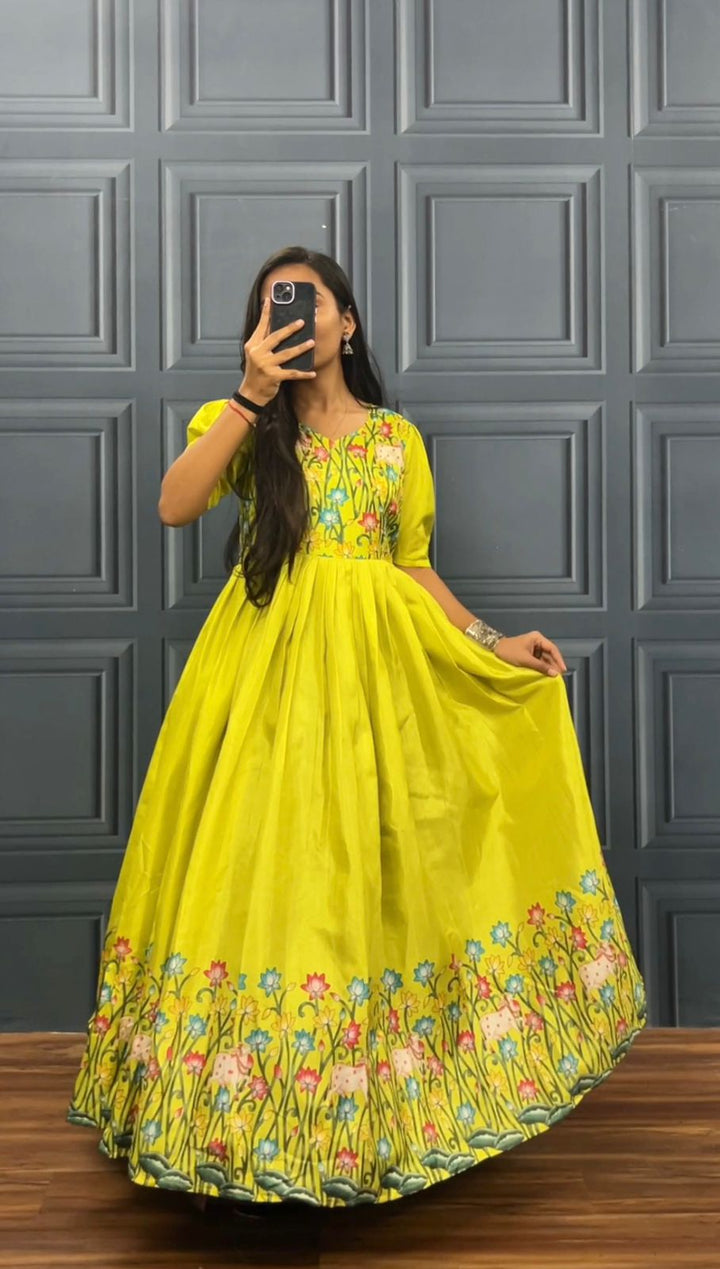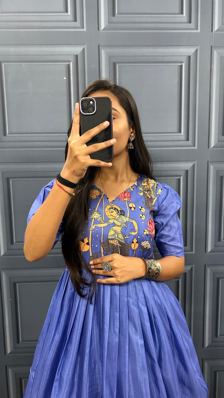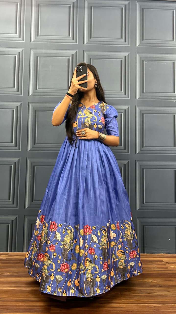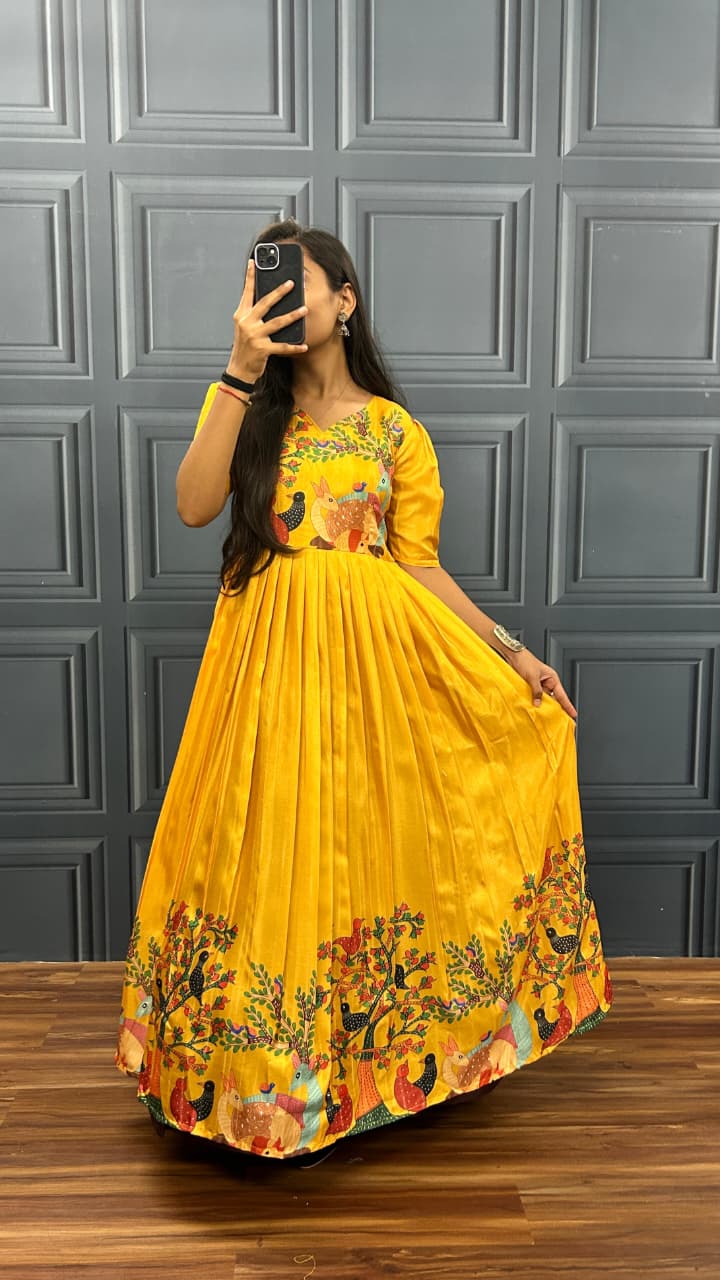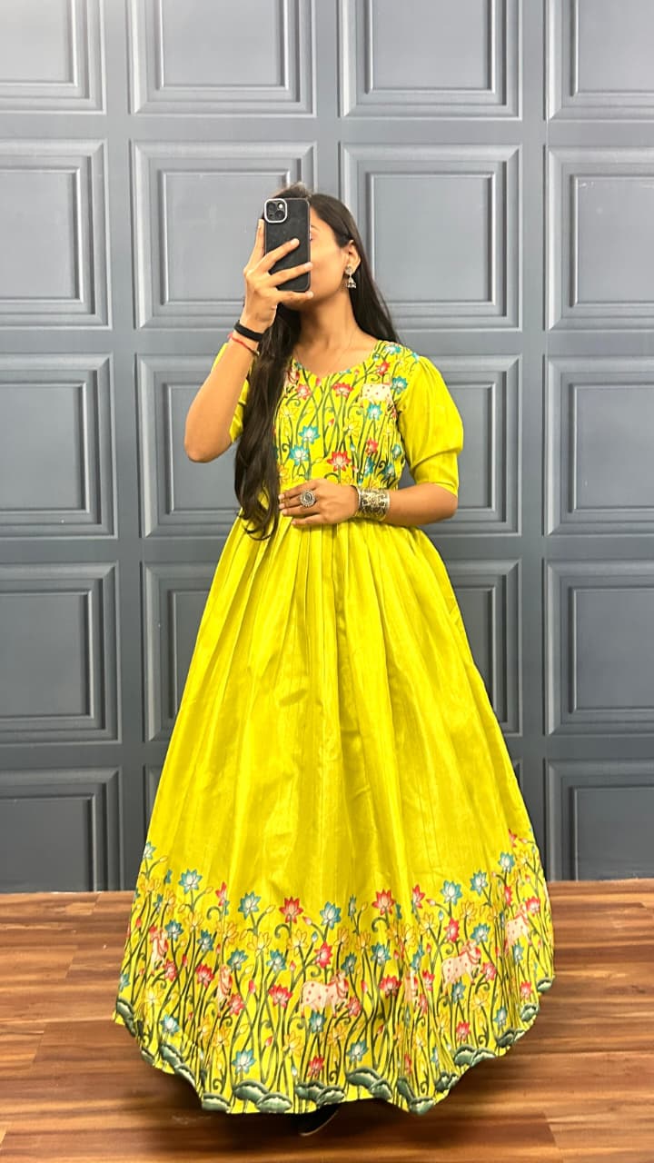 Soft Cotton Tussar Gown with Stylish Pichwai Print – Kids & Adults Sizes Available