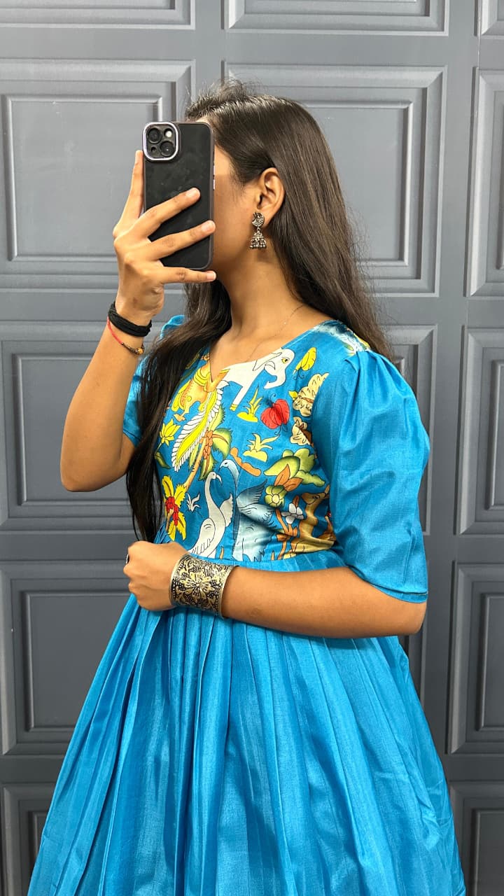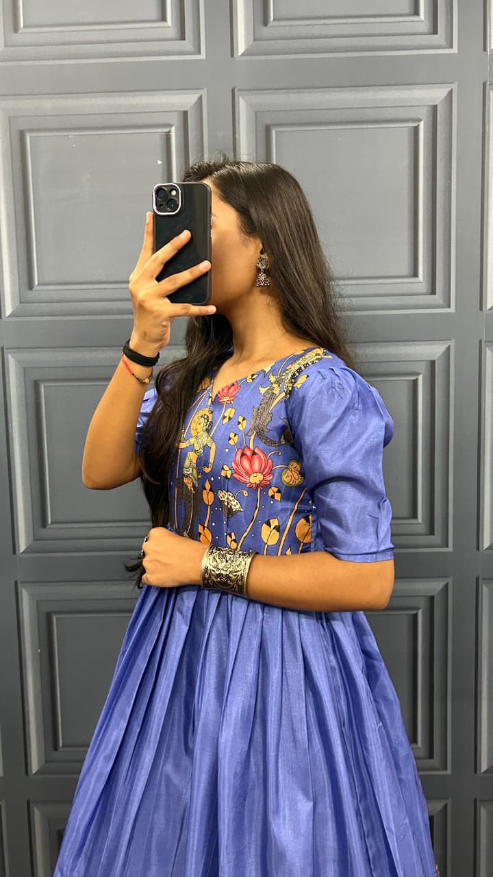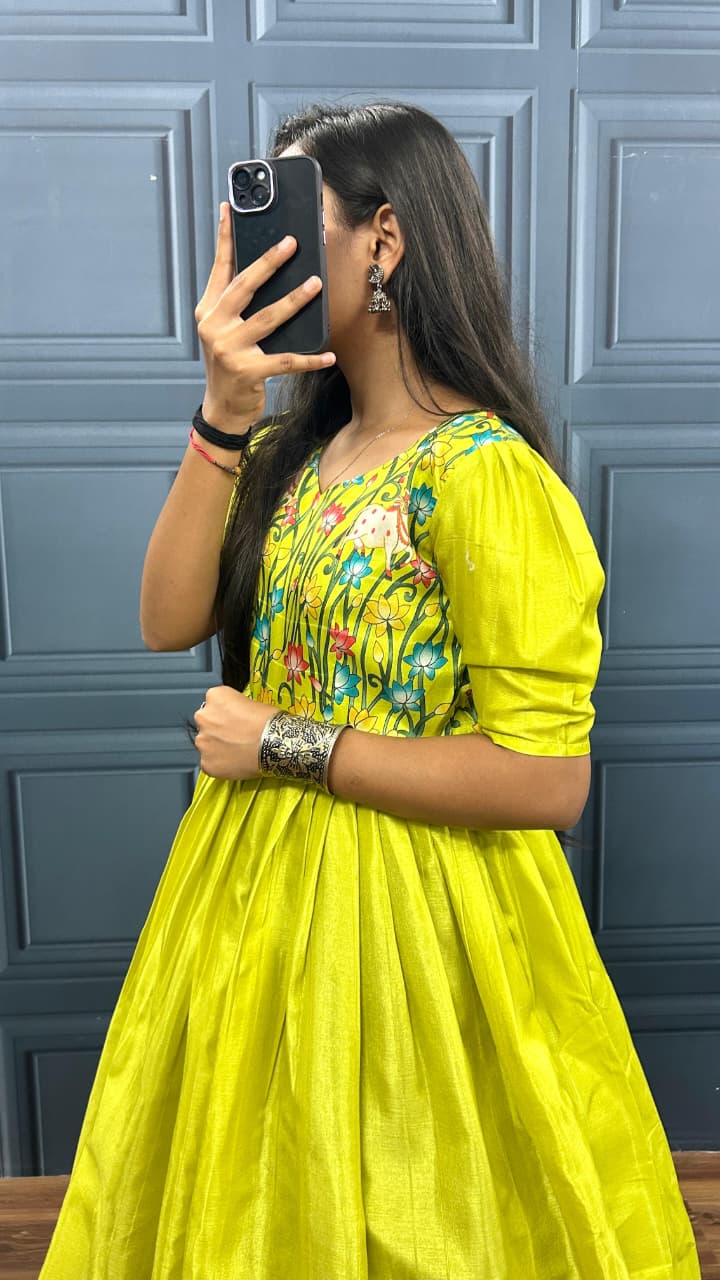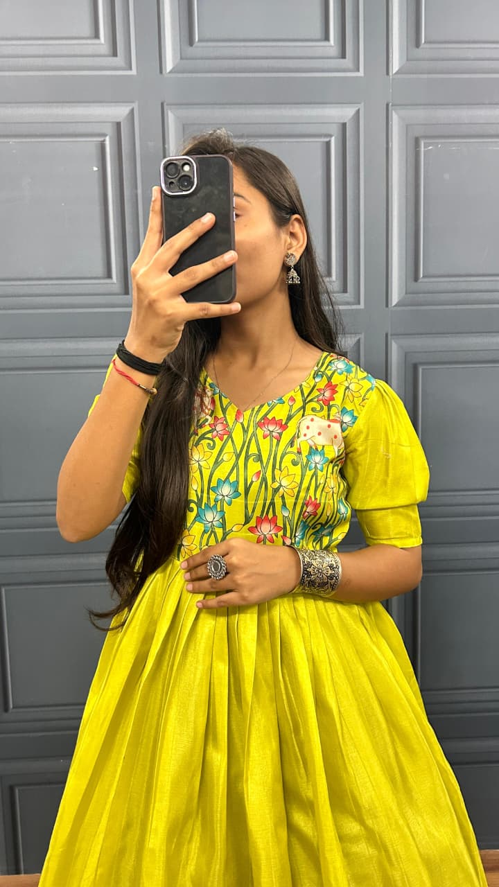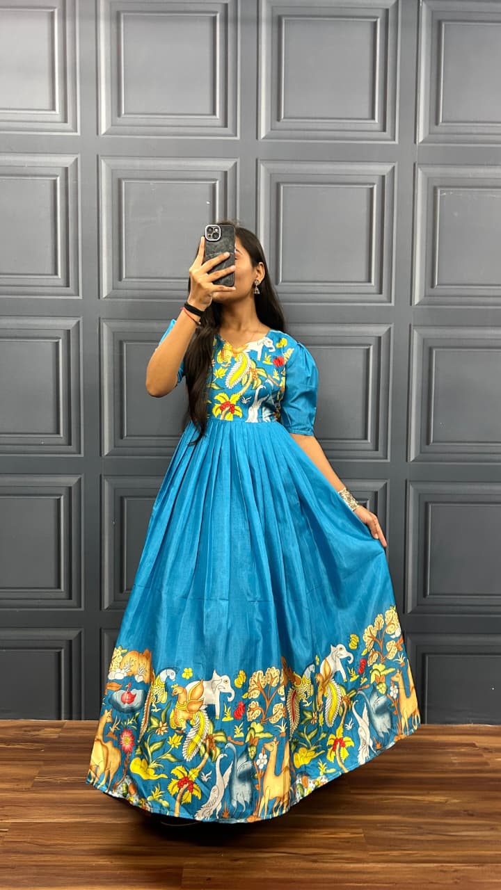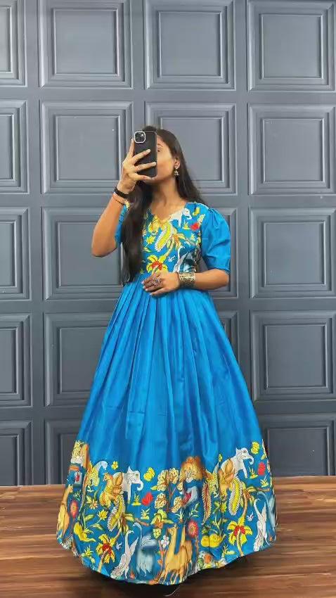 Soft Cotton Tussar Gown with Stylish Pichwai Print – Kids & Adults Sizes Available