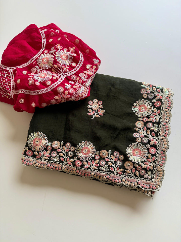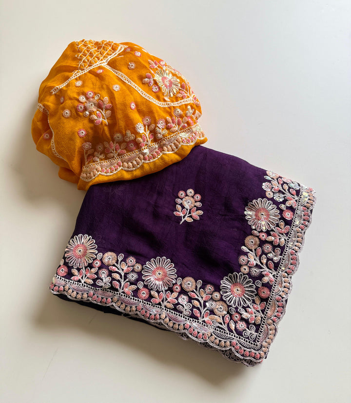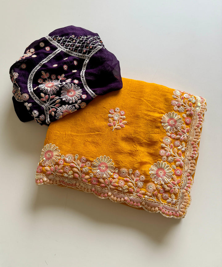 ▶️ Fabric: Soft Crush Silk with 4m sequence multi-color embroidery work ✨