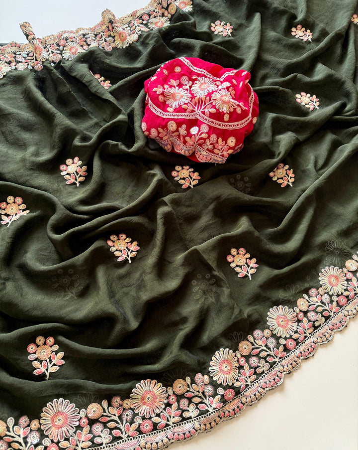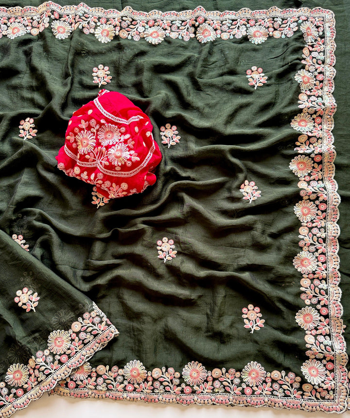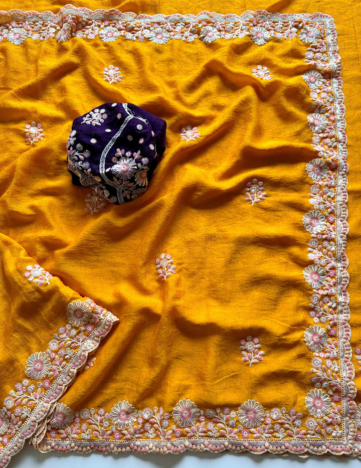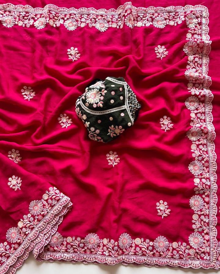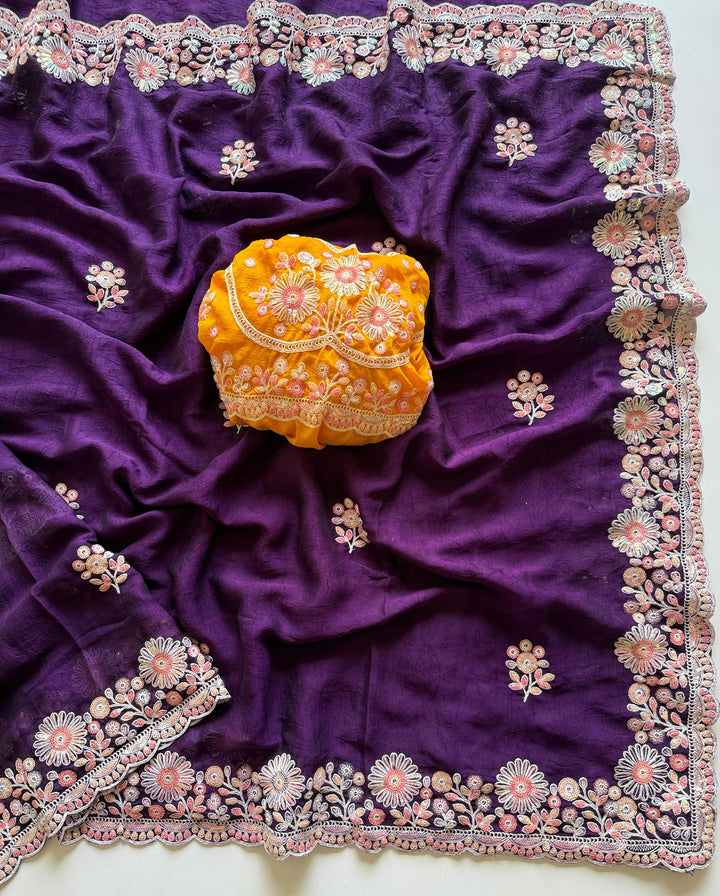 Soft Crush Silk Saree with Embroidery – New Arrival