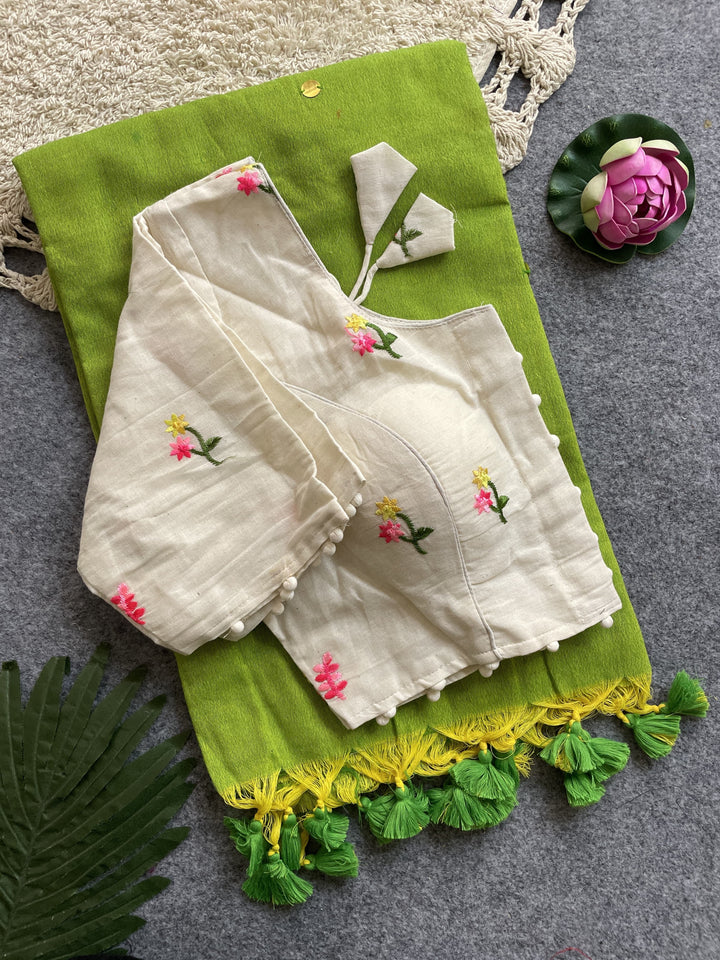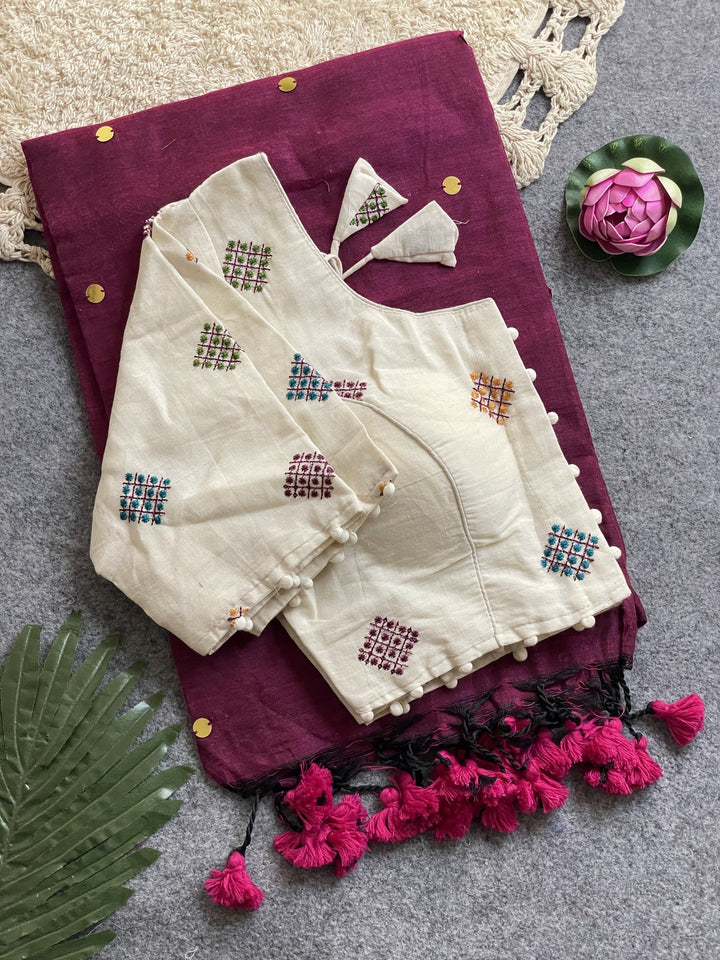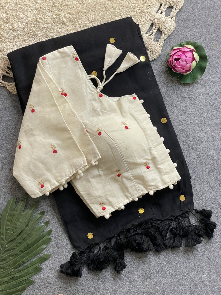 Saree: Original Khadi Cotton & 5 MM Sequence all over With Tasselse on Border