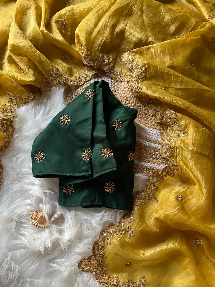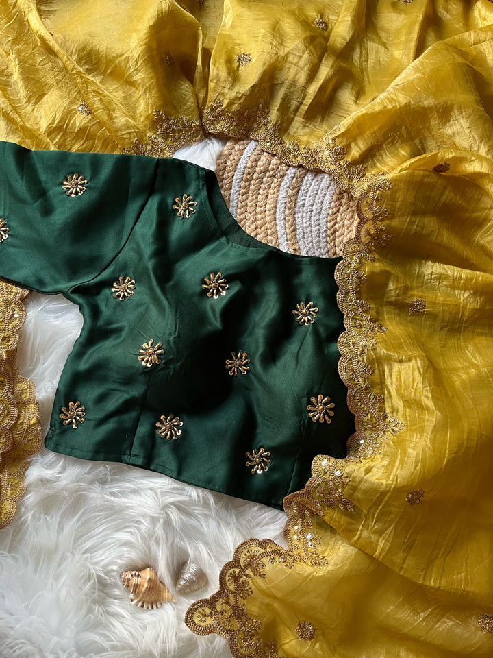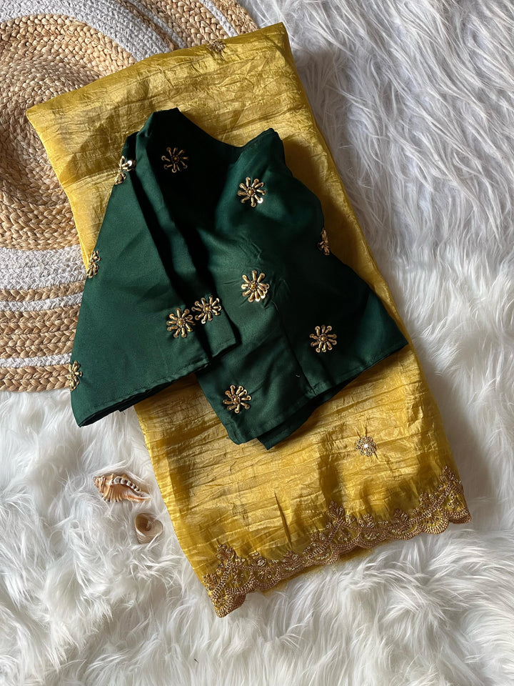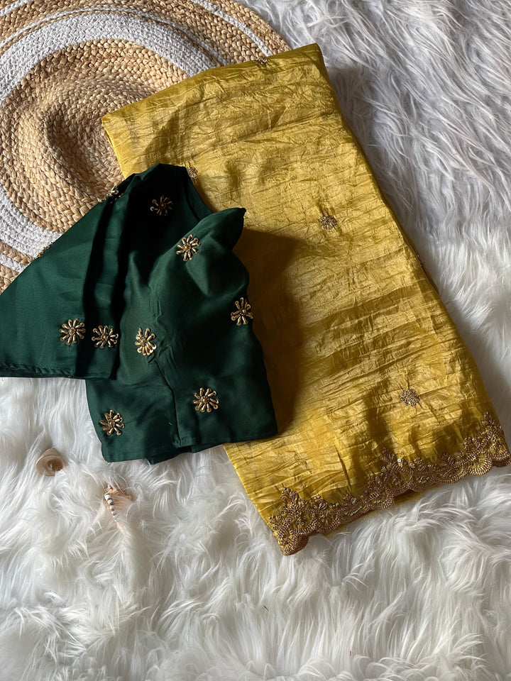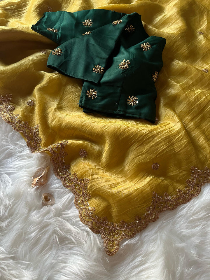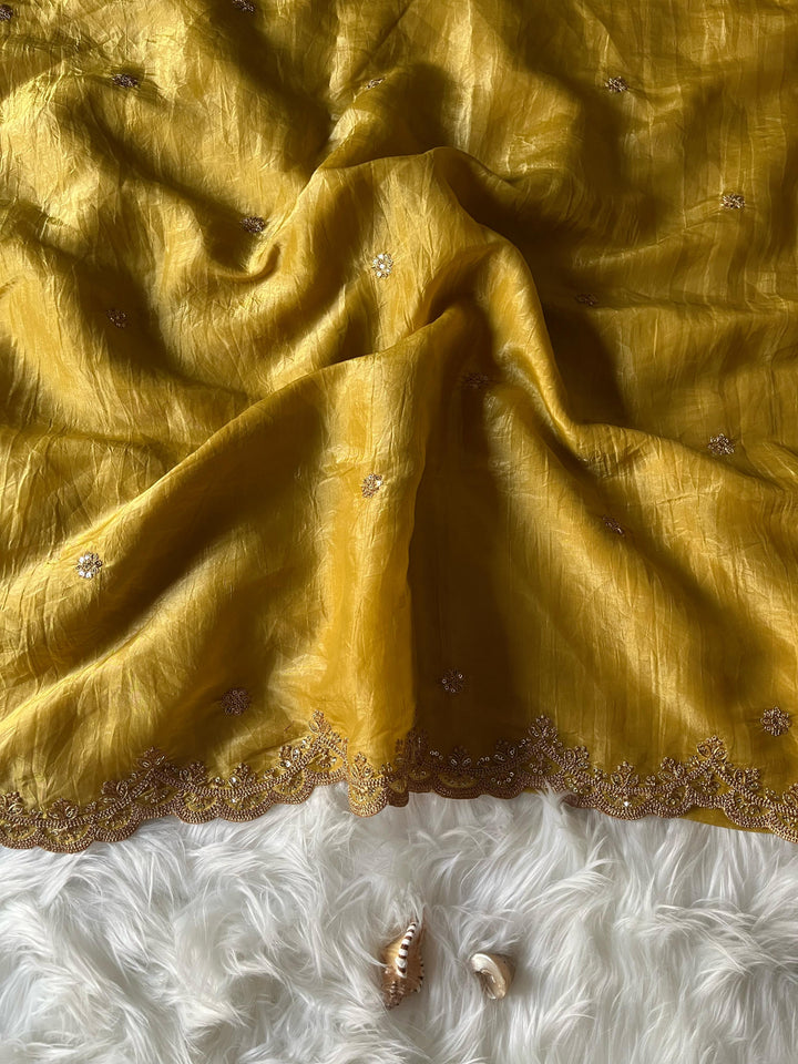 Soft Crush Tissue Hand Embroidery Zari Work Sareee