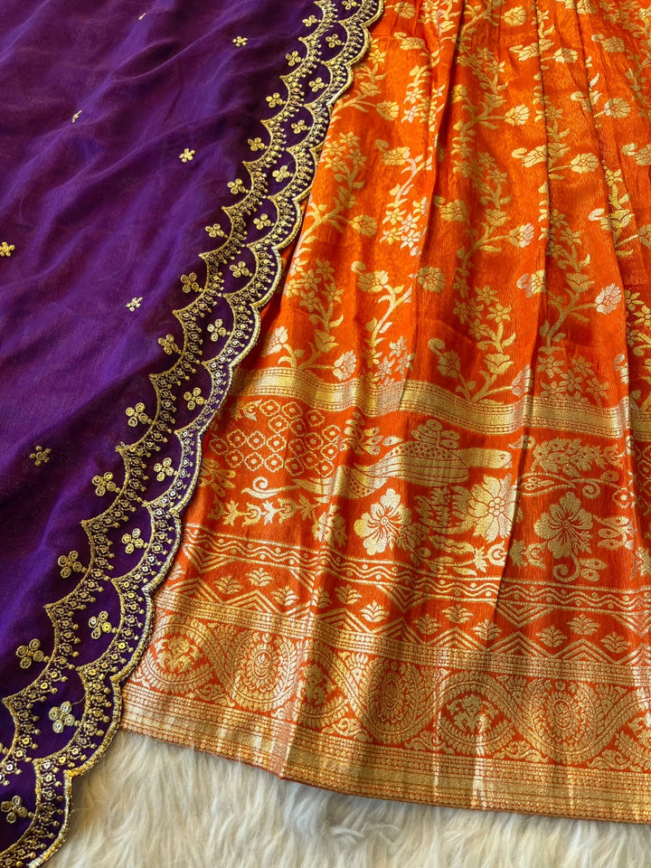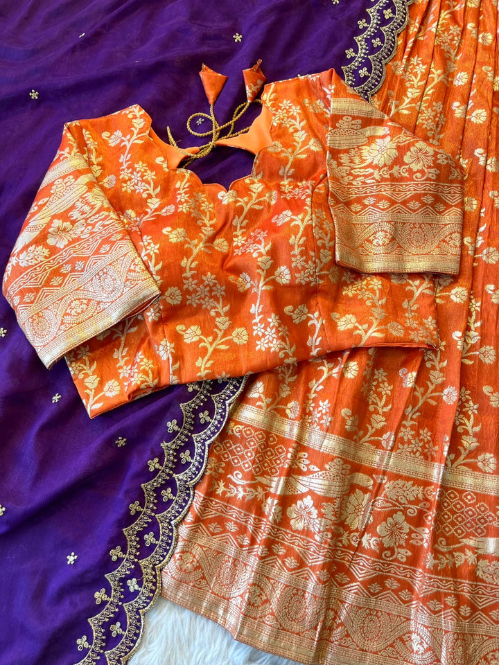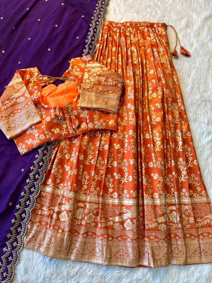 Rust Orange Tissue Trendy Lehengas
