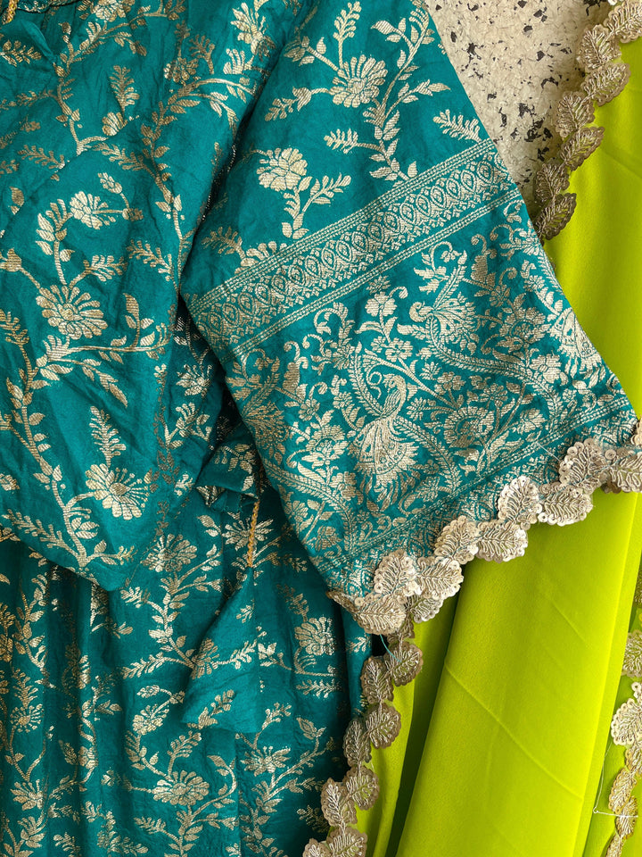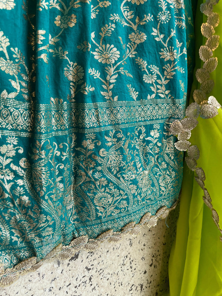 Fox silk Duppta with embroidery leaf scalloped work with 2.5 meter length