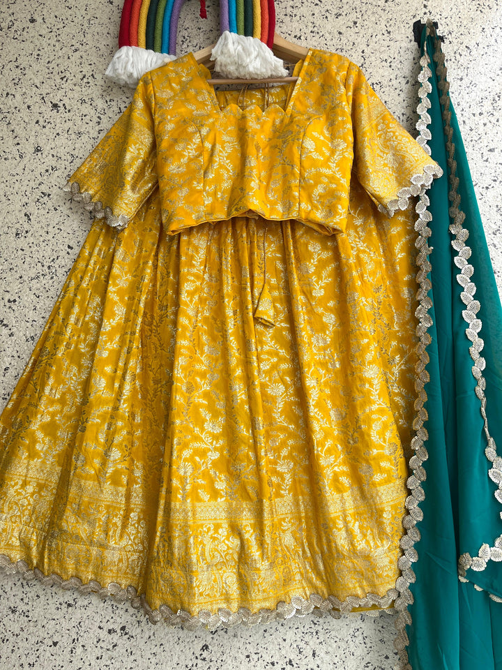 Lehengha Fabric : Dola silk with embroidery leaf cut work lace and Lehengha with canavs