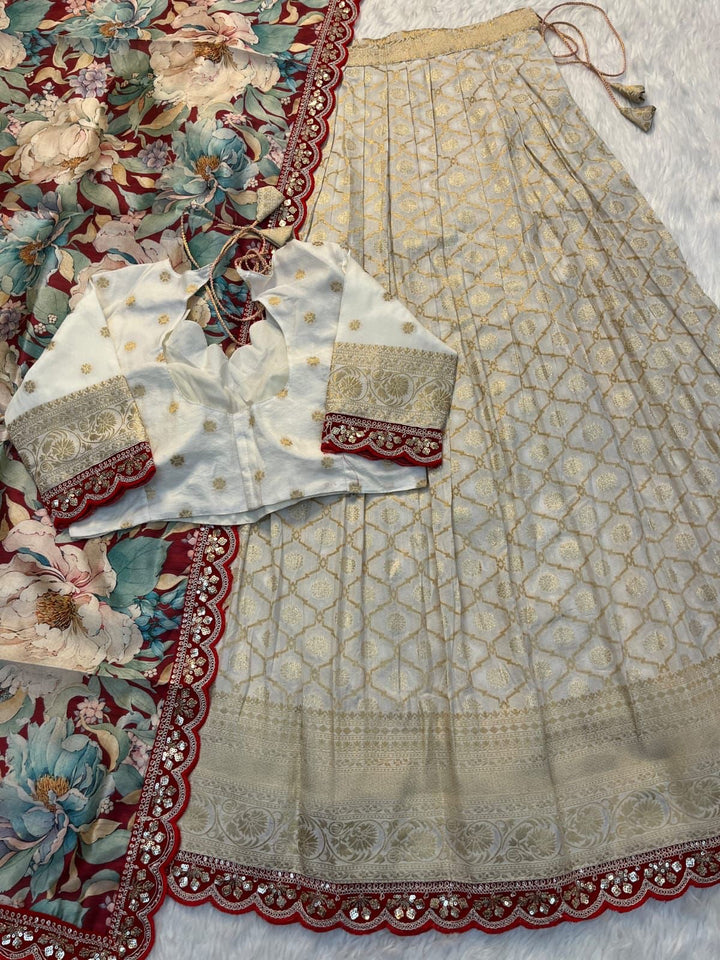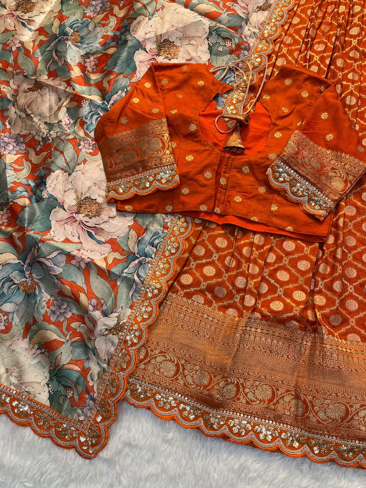 Exquisite Banarasi Lehanga Choli with Printed Dupatta