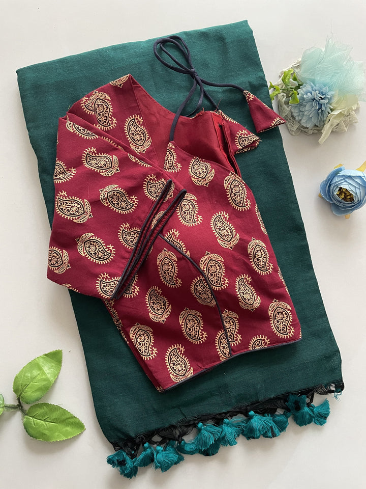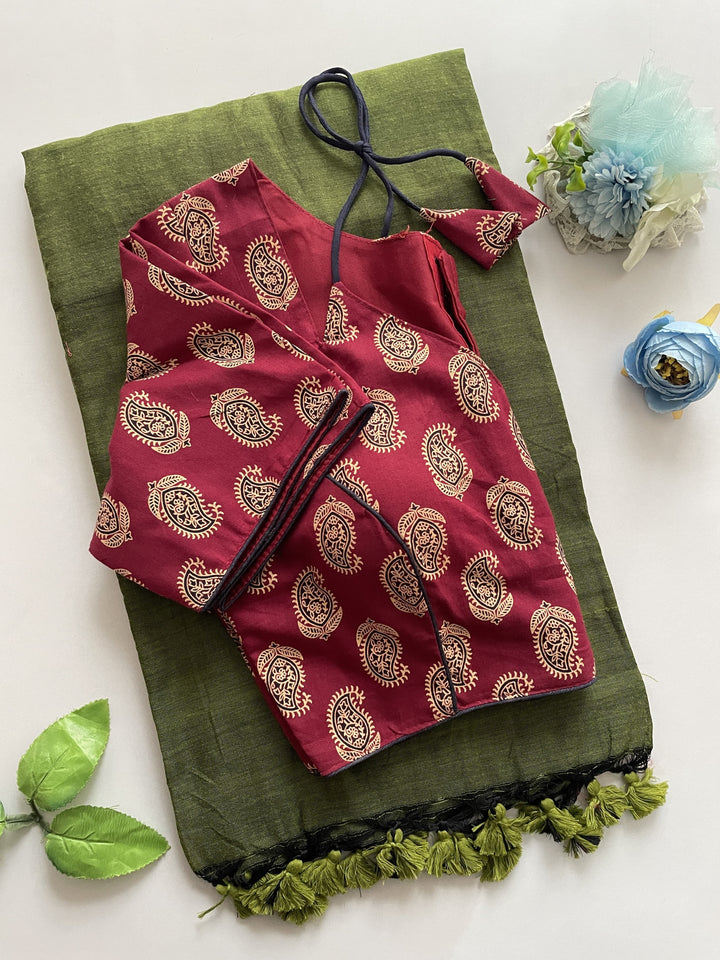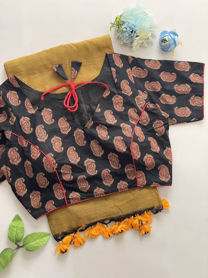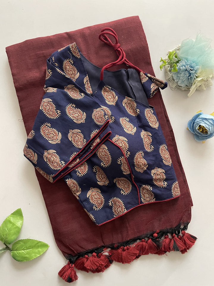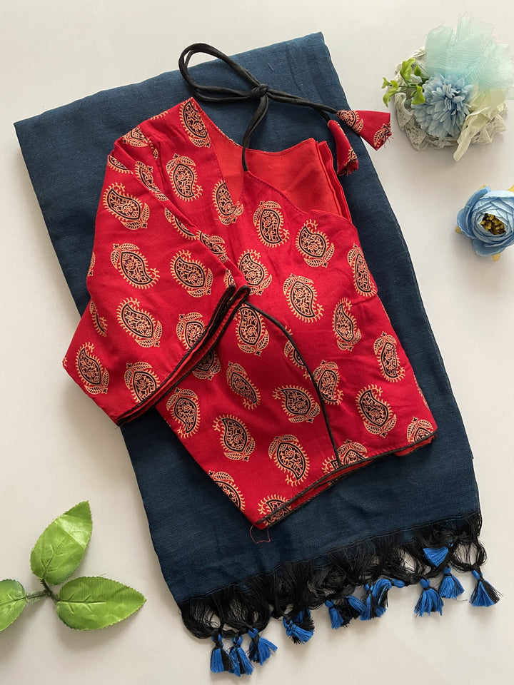 *PRESENTING AJRAKH COTTON HALTER NECK BLOUSE WITH KHADI COTTON SAREE*