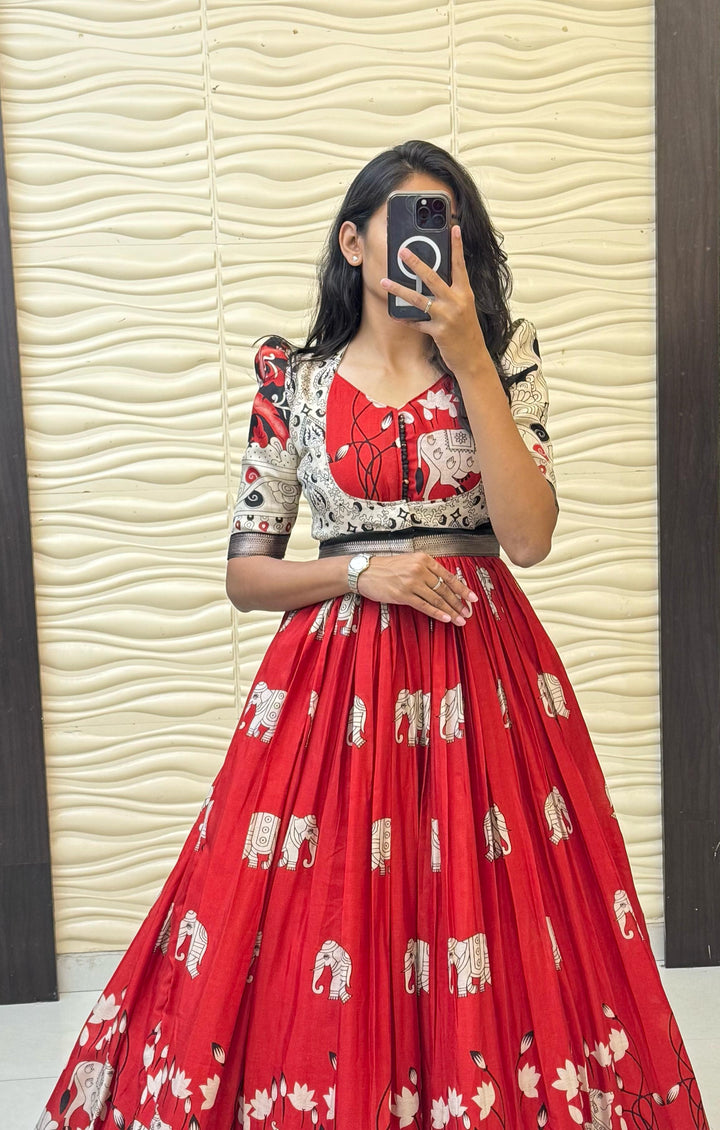 GOWN :- HEAVY SOFT DOLA SILK KALAMKARI PRINTED FABRIC WITH Jecared Border along with FULL INNER