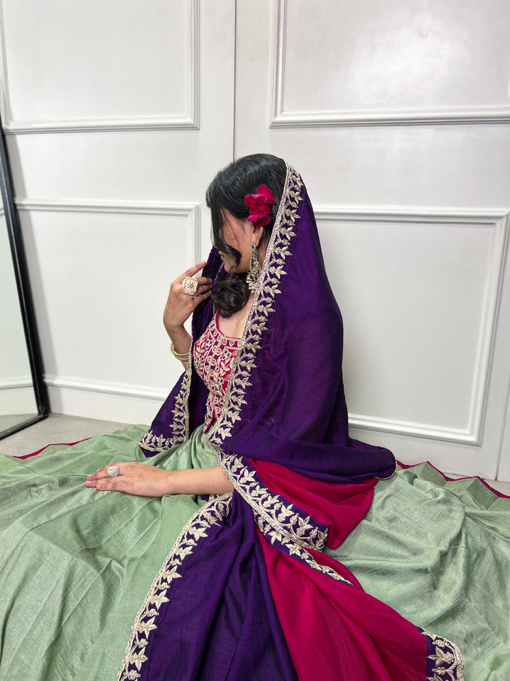 Dupatta Work : Sequins and Thread Embroidery Work With Lace Touch Up