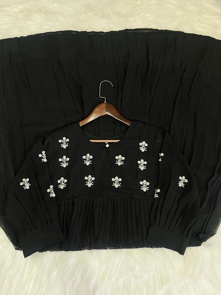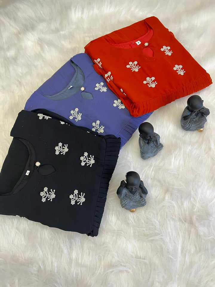 ✨FABRIC - BLOOMING GEORGETTE KURTI WITH BEAUTIFUL NECK AND DESIGNER SLEEVES WITH HANDWORK ( KHATLI - Maggam Work )